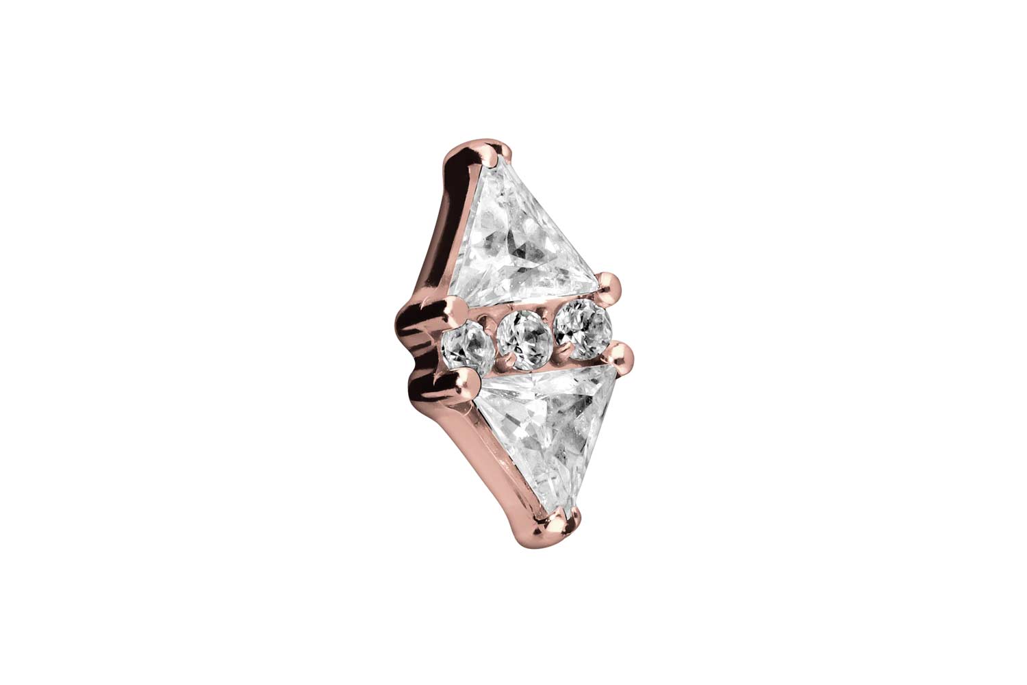 This timelessly beautiful screw-in attachment in the form of a sparkling crystal rhombus was specially developed for our internal thread piercings and is made of high quality titanium, which among other advantages is characterized by good skin compatibility and high durability. Also one of its specific material properties is color fastness, guaranteed in the silver-colored variant as well as in the black, gold and rosegold-colored variants with PVD coating. Since the 0.9 mm external thread of the attachment is compatible with all our products with this kind of internal thread, there are various combination possibilities.