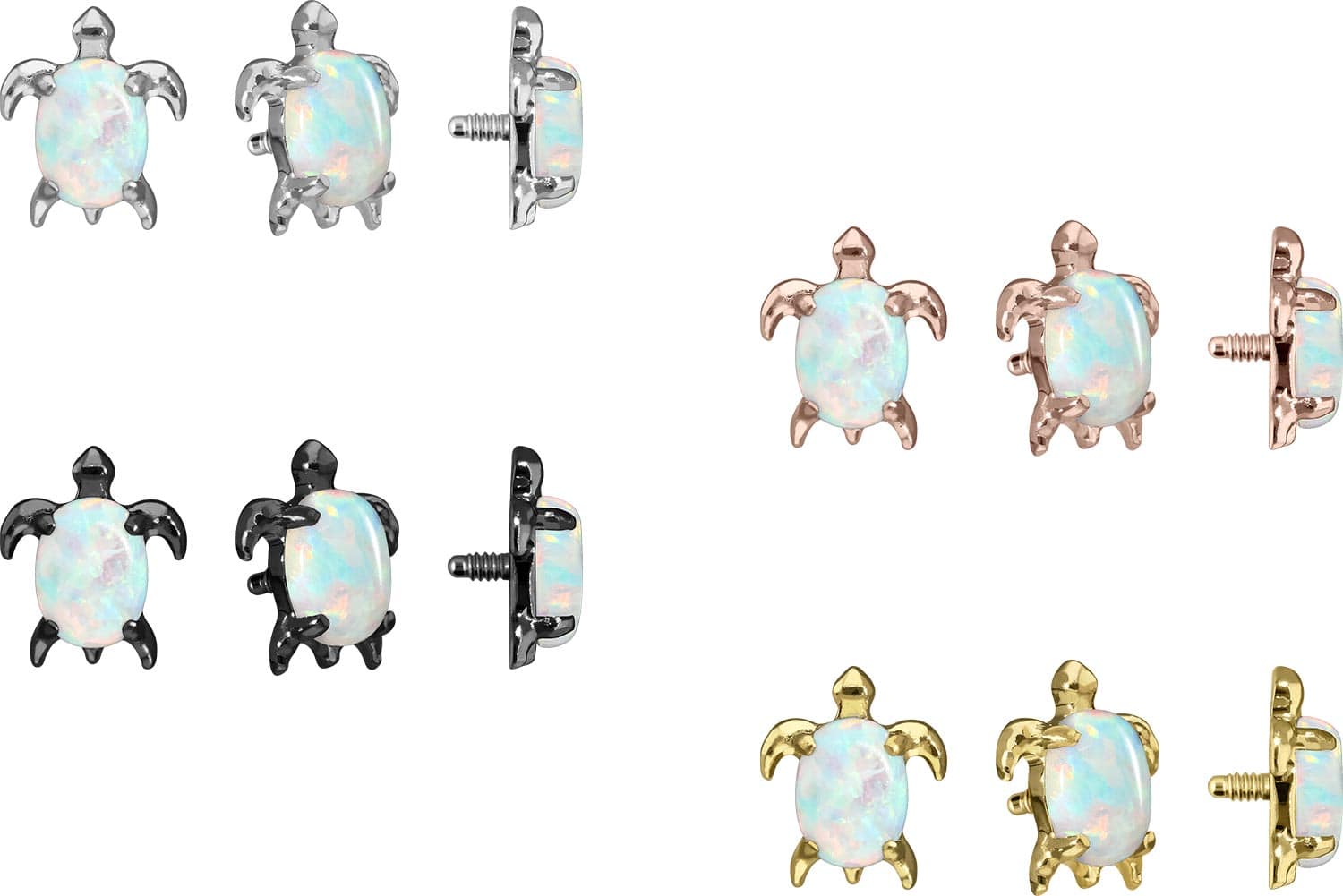 This timelessly beautiful screw-in attachment in the form of a turtle was specially developed for our internal thread piercings and is made of high quality titanium, which among other advantages is characterized by good skin compatibility and high durability. Also one of its specific material properties is color fastness, guaranteed in the silver-colored variant as well as in the black, gold and rosegold-colored variants with PVD coating. Since the 0.9 mm external thread of the attachment is compatible with all our products with this kind of internal thread, there are various combination possibilities.