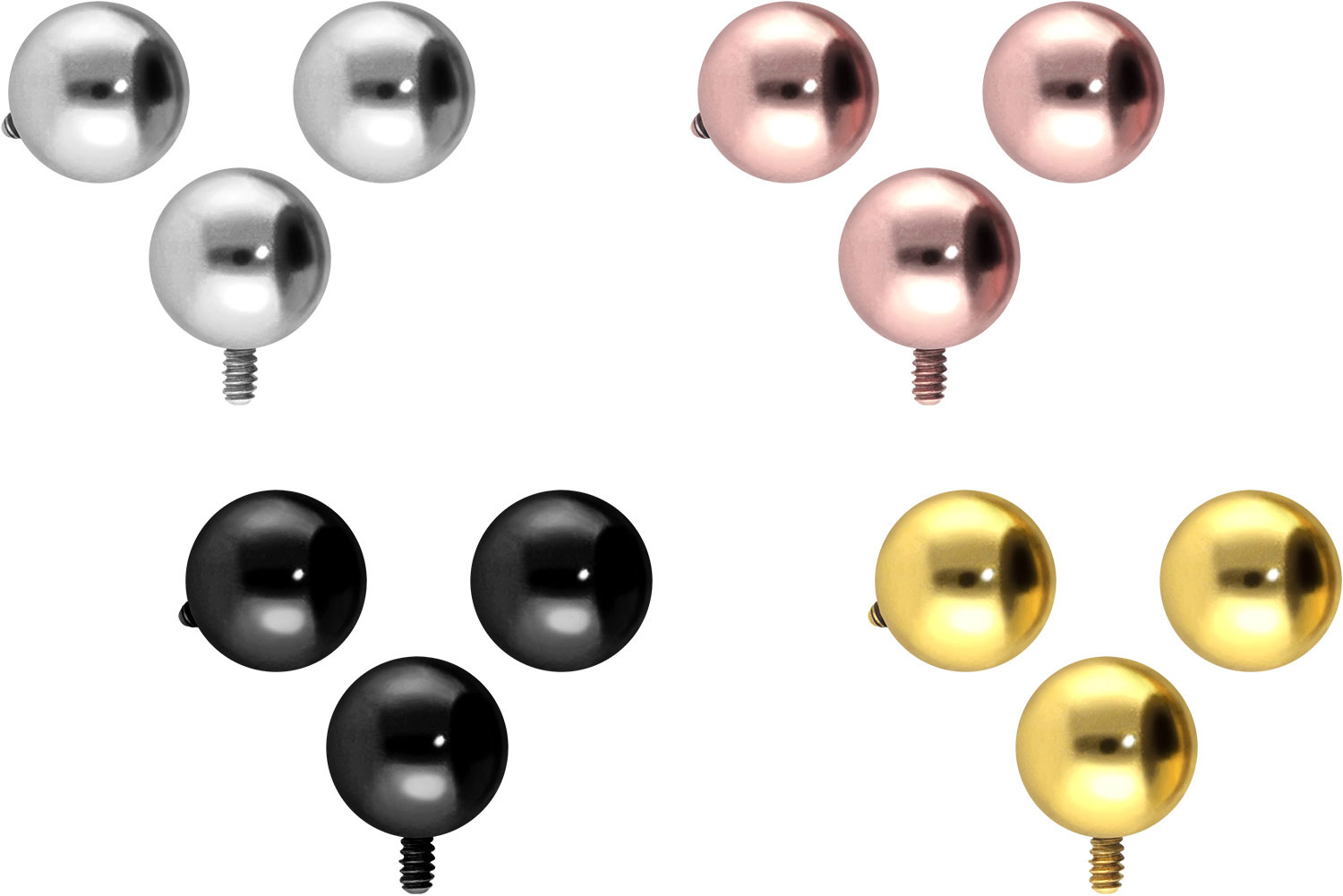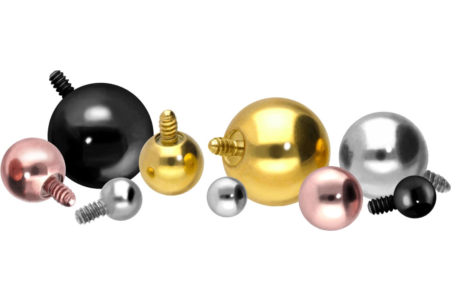 gold and rosegold-colored variants with PVD coating. Since the 0.9 mm external thread of the screw-in ball is compatible with all our products with this kind of internal thread, there are various combination possibilities.