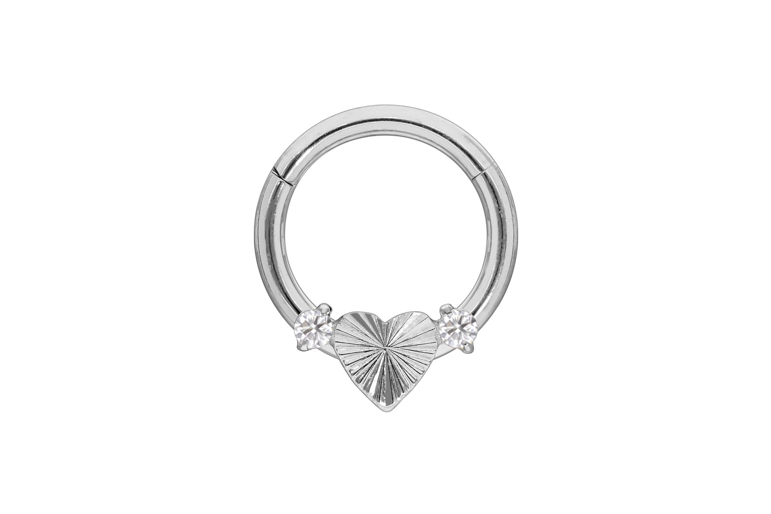 Titanium segment ring clicker HEART + 2 CRYSTALS