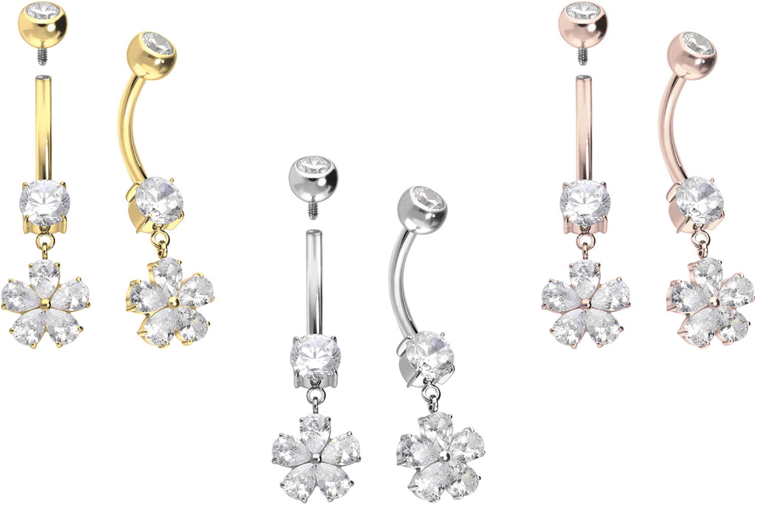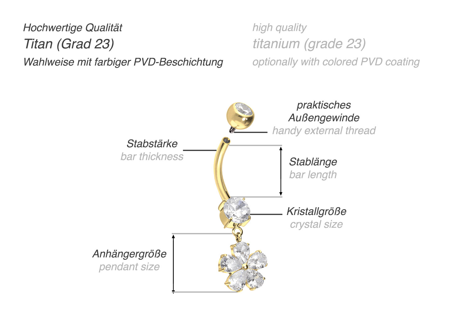 Titanium - Bellybutton Piercing with internal Thread Crystal Flower