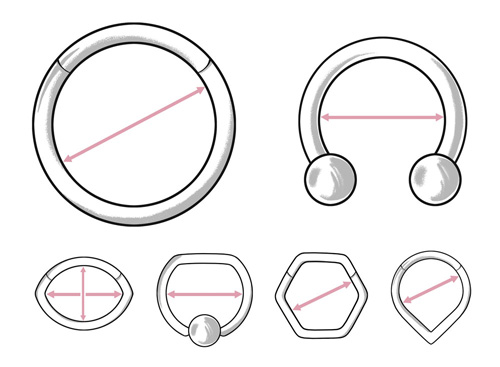 The size of ring-shaped items - especially piercing rings - is determined by their inner diameter.