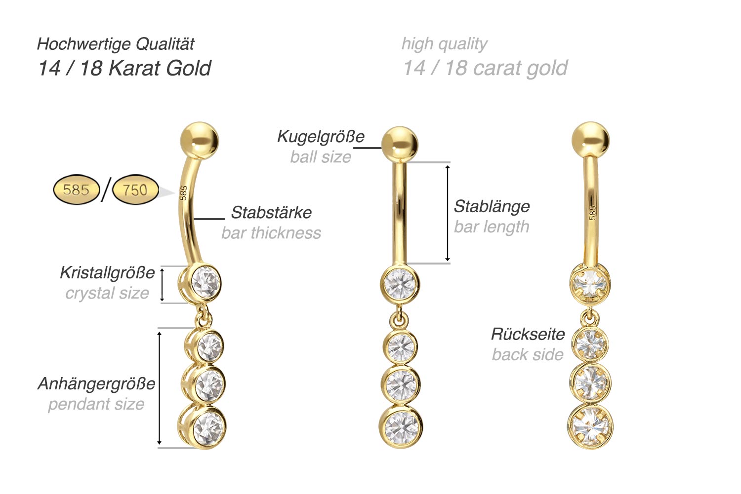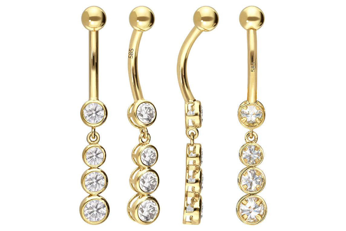 14/18 Karat Gold - Bauchnabelpiercing 4 Moissanite
