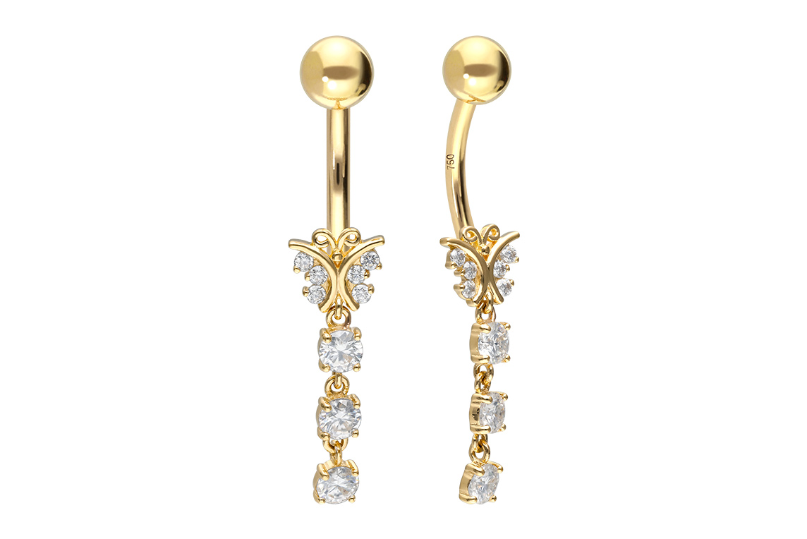 14/18 Karat Gold - Bauchnabelpiercing Moissanit-Schmetterling + 3 Moissanite