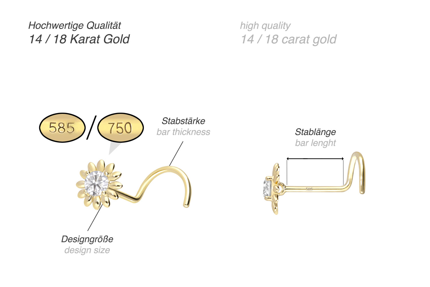 Designgröße (Blume): 5 mm14/18 Karat Gold - Nasenstecker Spirale Moissanit + Blume