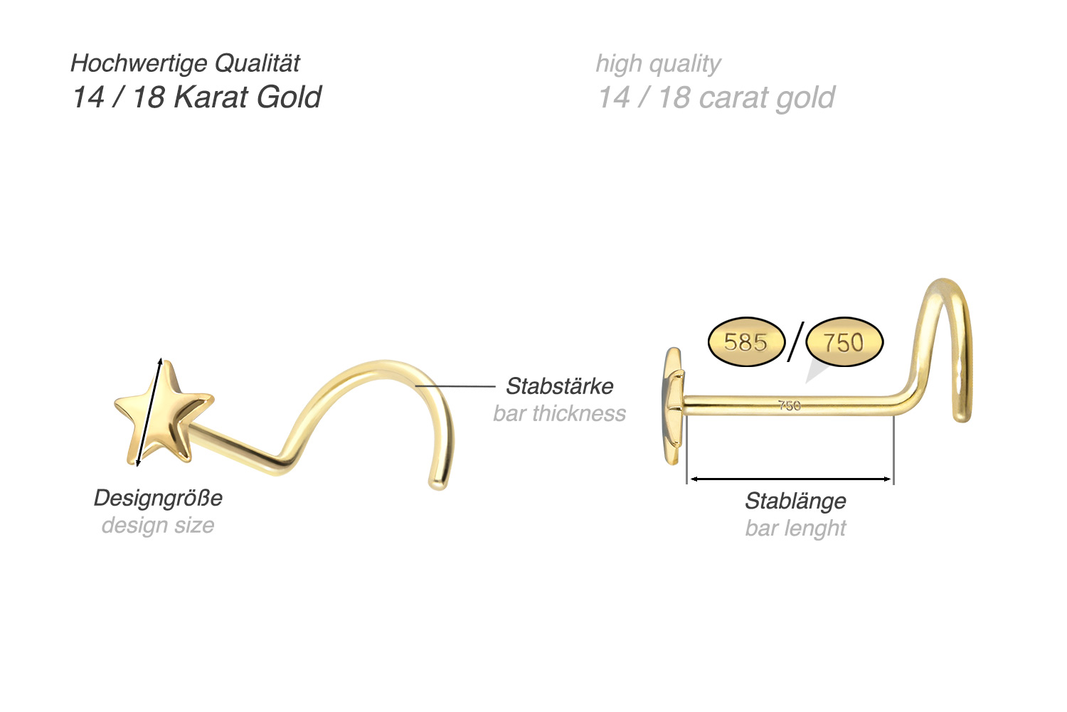 Designgröße (Stern): 3 mm14/18 Karat Gold - Nasenstecker Spirale Stern