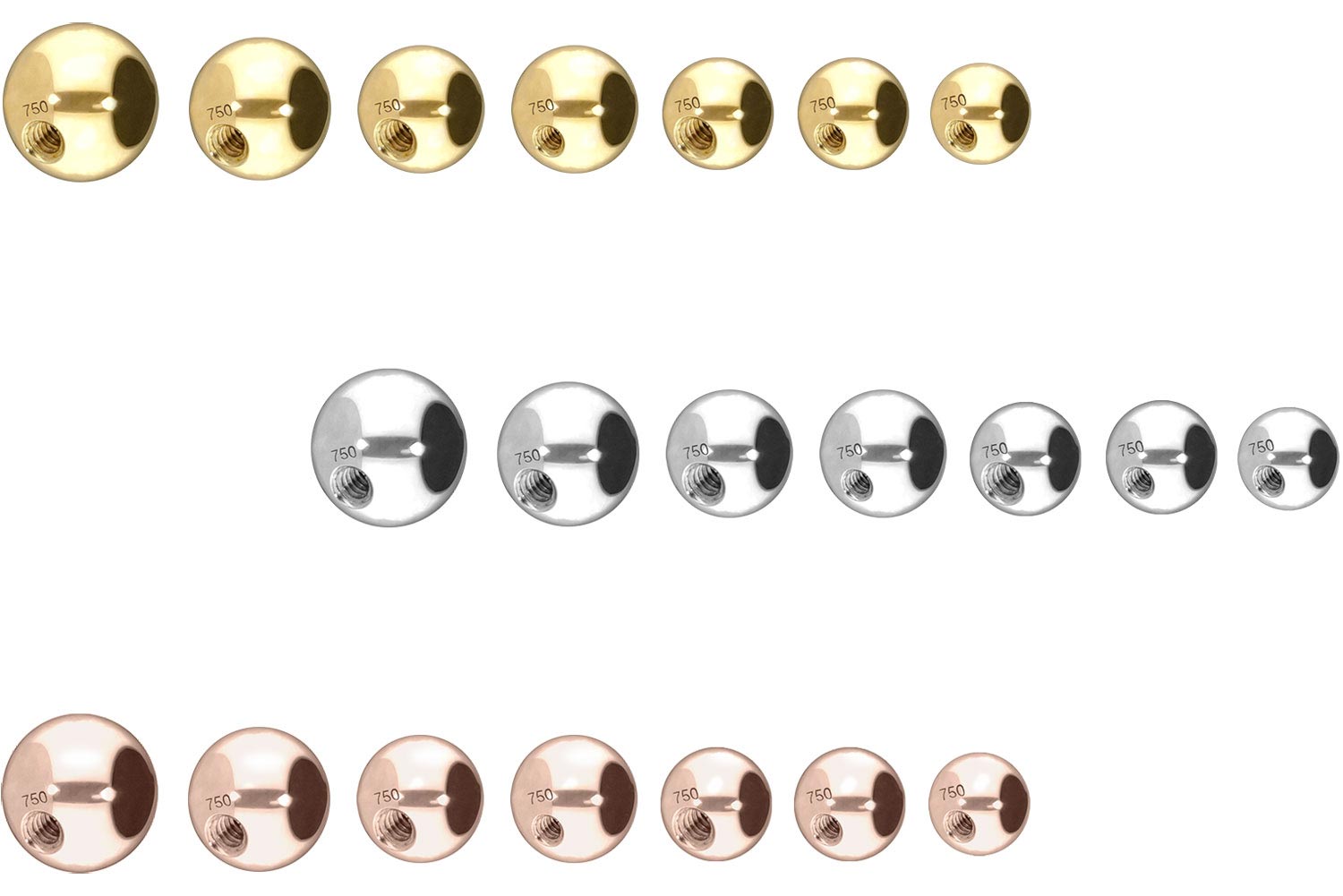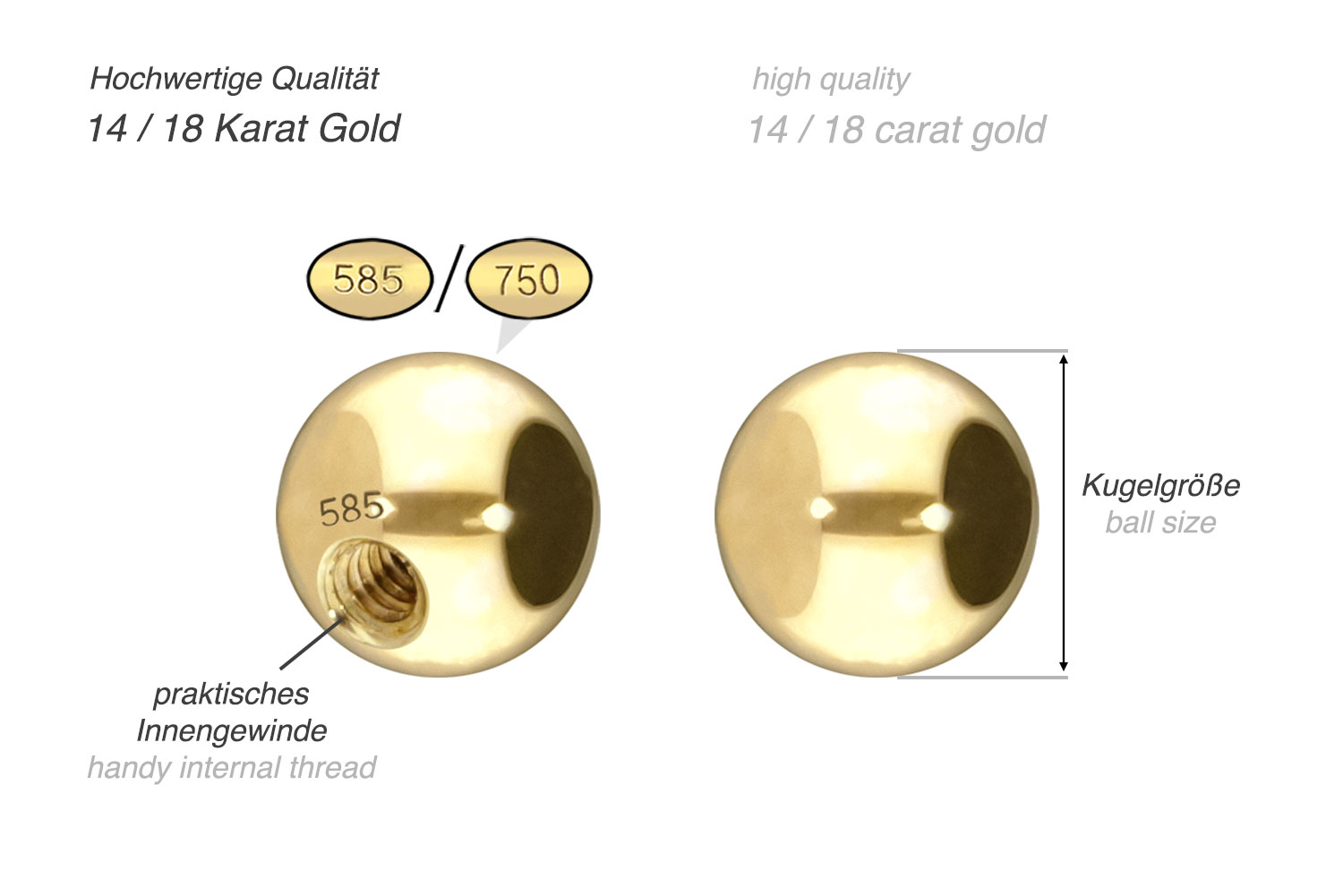 Diese edle Schraubkugel besteht vollständig aus hochwertigem 14 Karat (585) oder 18 Karat (750er) Gold, das neben seiner exzellenten Qualität