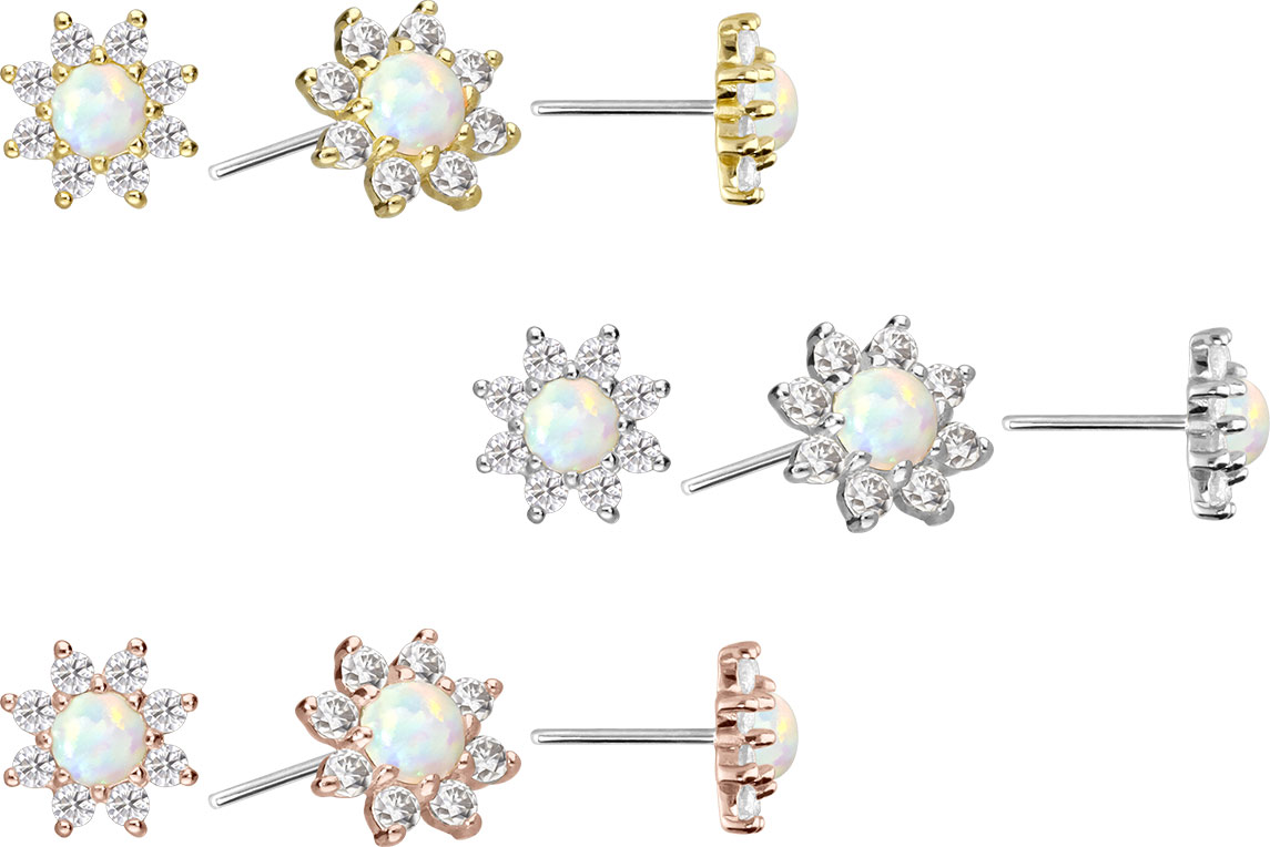 14 Karat Gold - Aufsatz mit Titan Push Pin Moissanit-Blume + synthetischer Opal