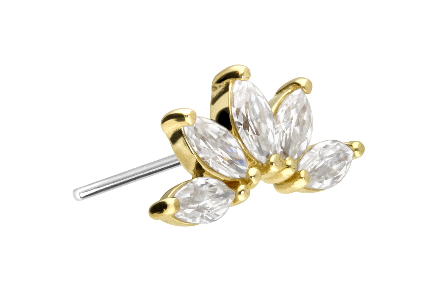 14 Karat Gold - Aufsatz mit Titan Push Pin Moissanit-Lotusblüte