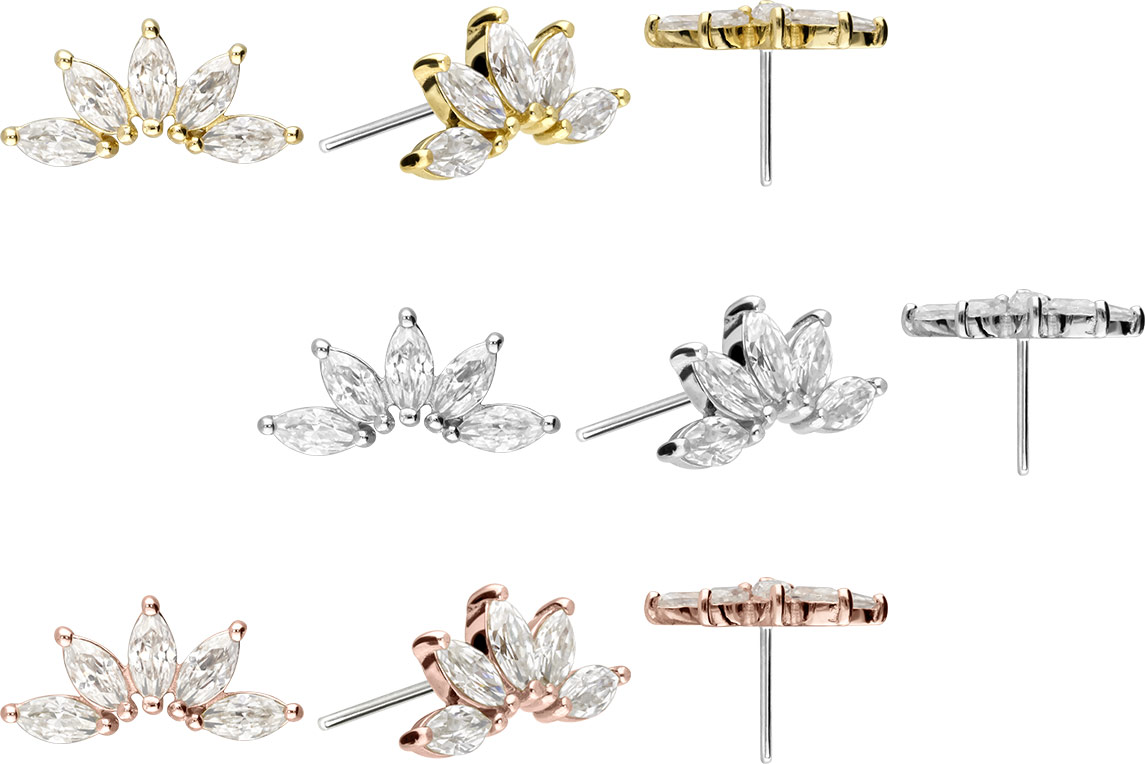 14 Karat Gold - Aufsatz mit Titan Push Pin Moissanit-Lotusblüte