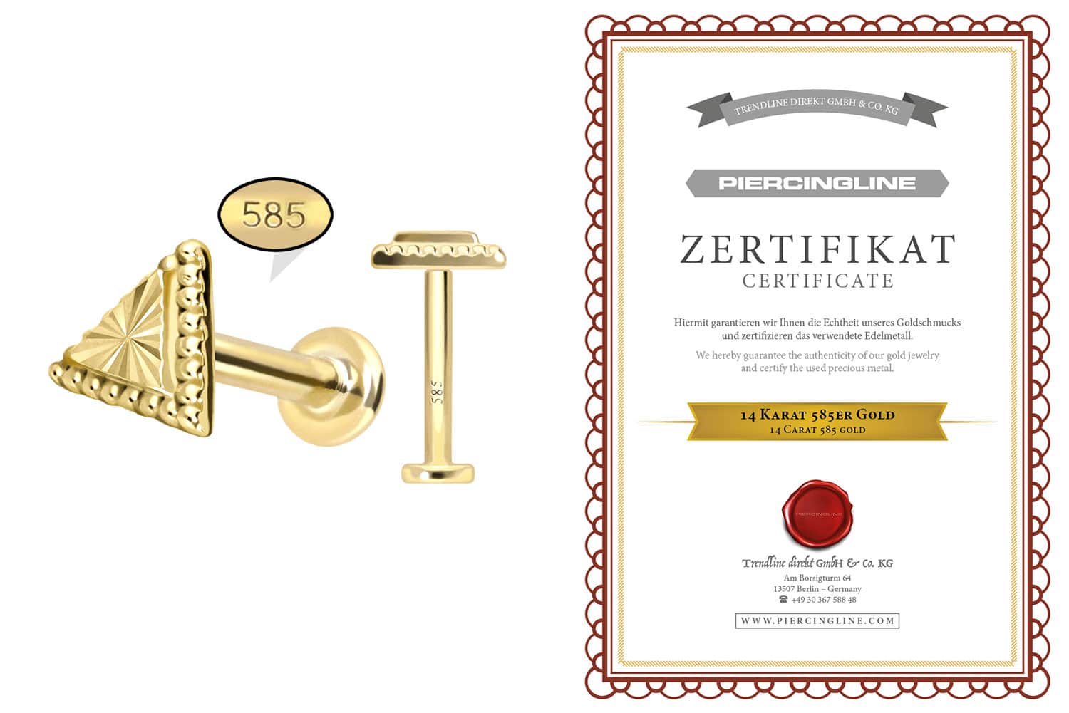 14 Karat Gold - Labret mit Innengewinde Dreieck