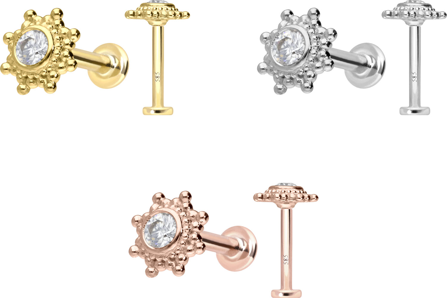 14 Karat Gold - Labret mit Innengewinde Moissanit-Sonne