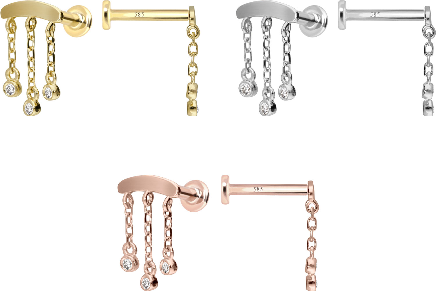 14 Karat Gold - Labret mit Innengewinde Moissanit-Windspiel