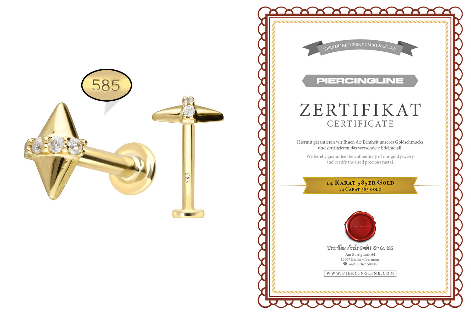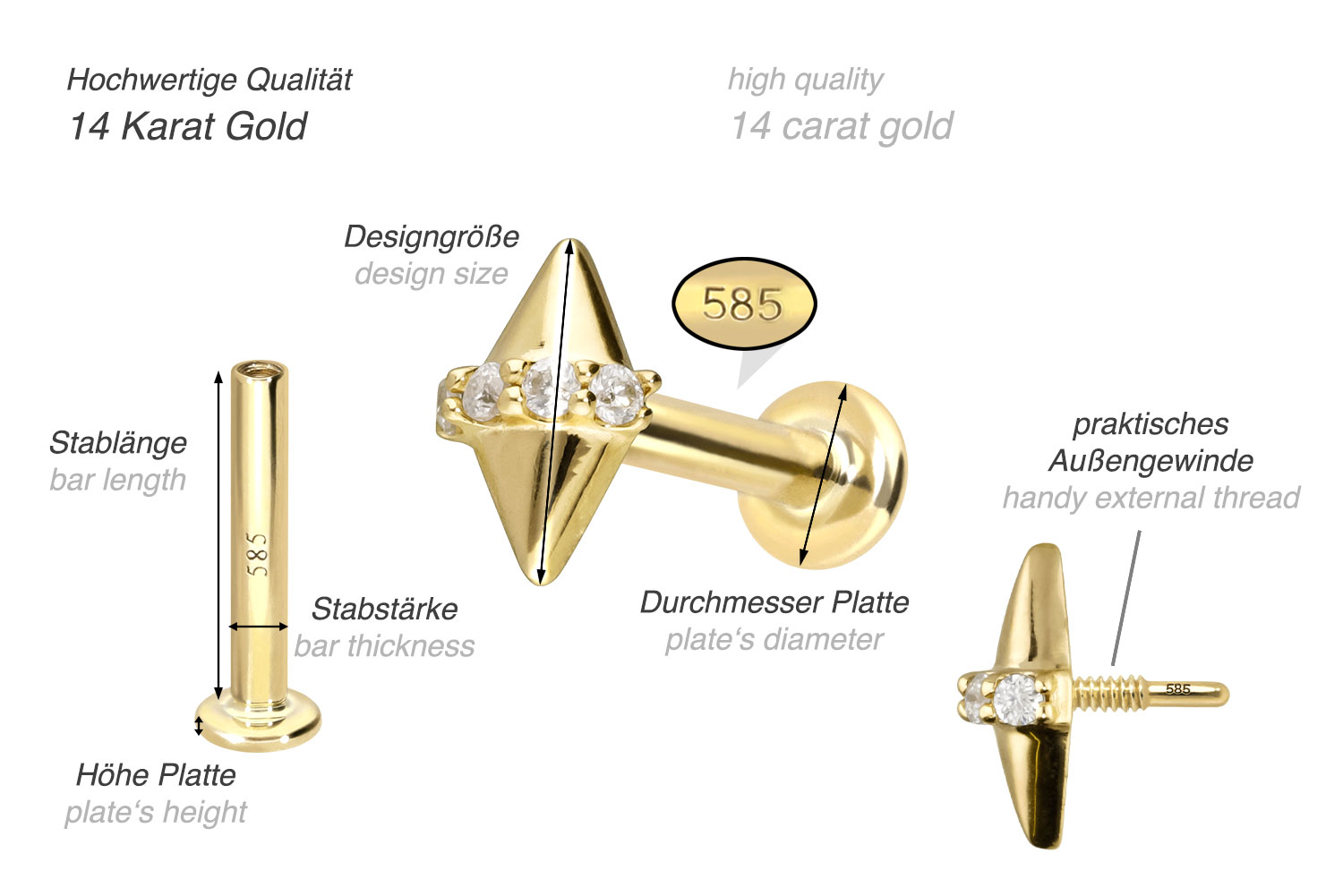 14 Karat Gold - Labret mit Innengewinde Moissanite + 2 Spitzen
