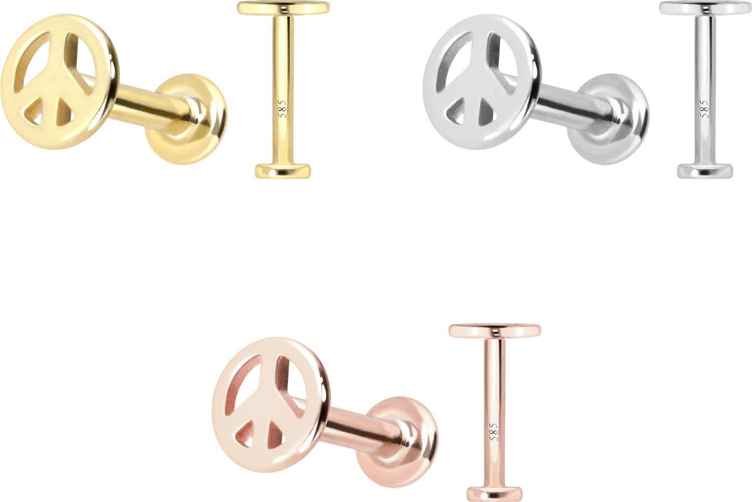 14 Karat Gold - Labret mit Innengewinde Peace-Zeichen
