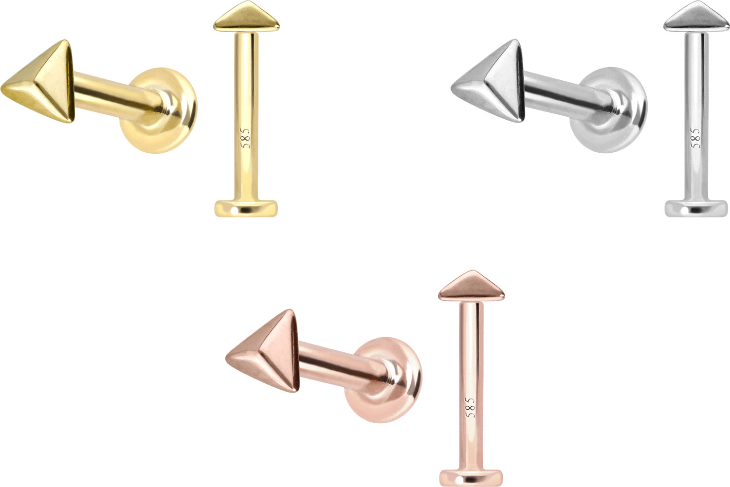 14 Karat Gold - Labret mit Innengewinde Pyramide