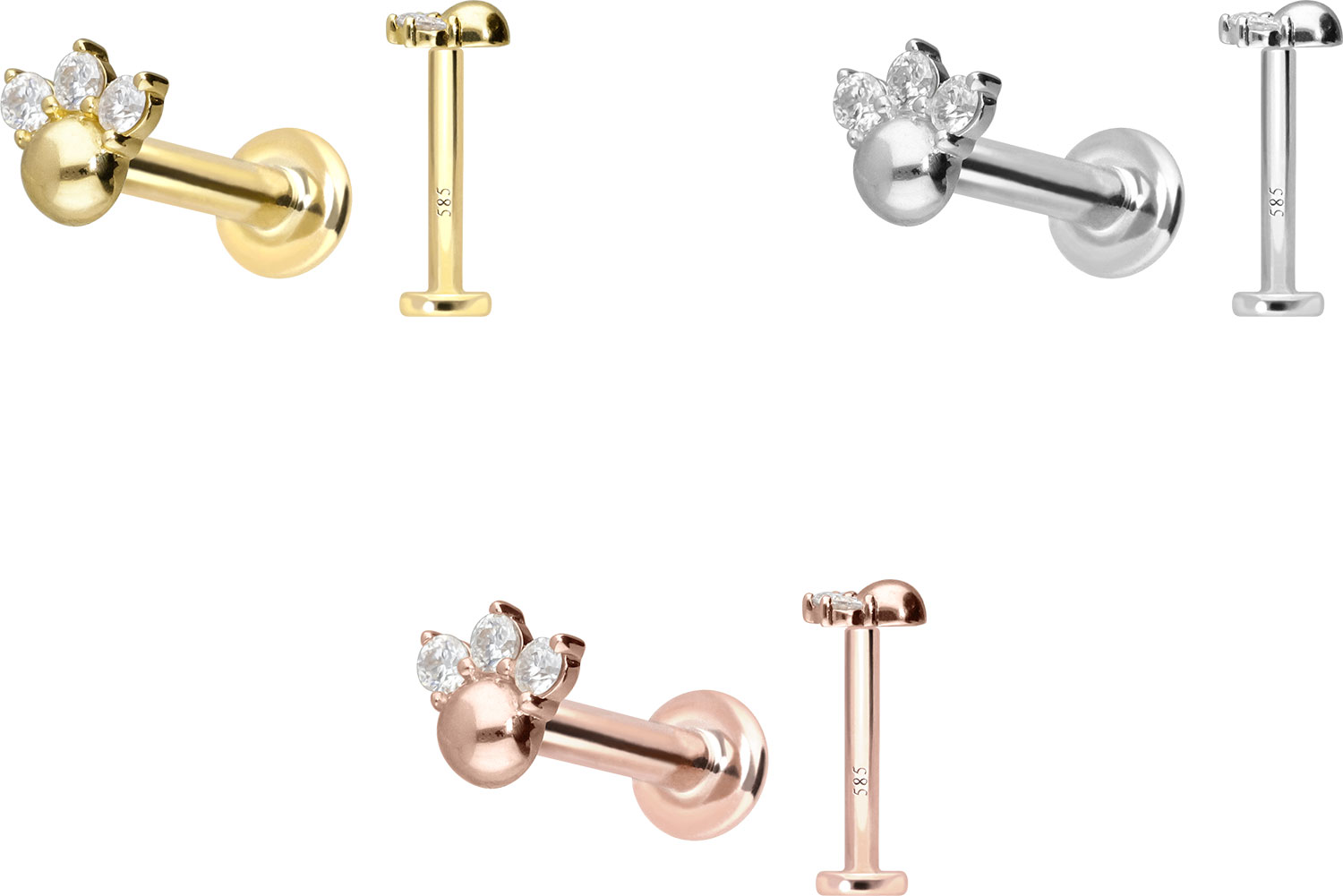 14 Karat Gold Labret mit Push Fit 3 MOISSANITE + KUGEL