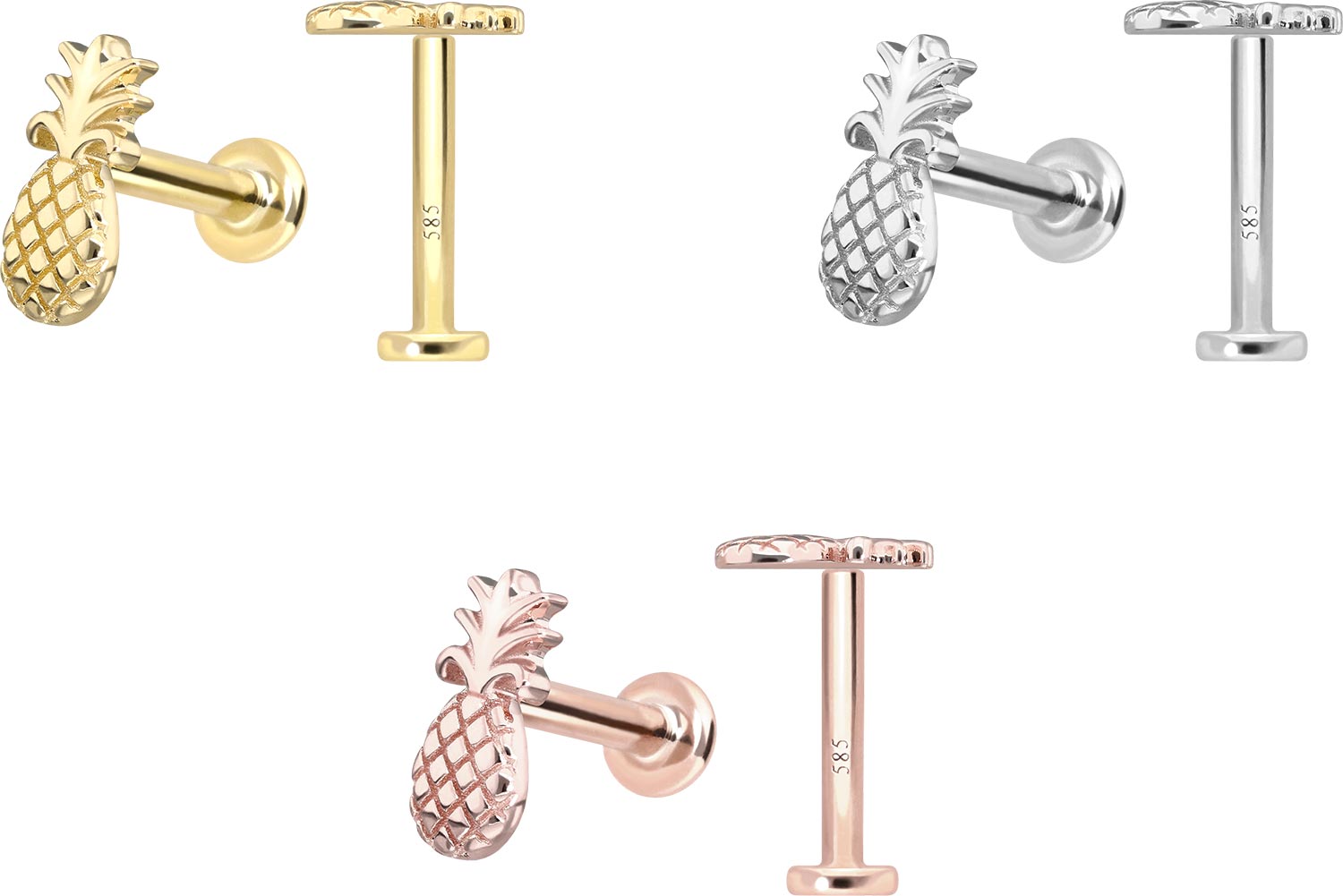 Dieses Labret ist aus hochwertigem 14 Karat (585er) Gold gefertigt, das neben seiner exzellenten Qualität auch mit Eigenschaften wie guter Hautverträglichkeit und hoher Beständigkeit zu begeistern weiß. Farblich ist es in Gelbgold, Roségold und rhodiniertem Weißgold erhältlich. Das Labret verfügt über einen zeitlos schönen Aufsatz mit Titan Push Pin in Form einer Ananas, hat eine Stabstärke von entweder 1 oder 1,2 mm und ist in den unten aufgeführten Stablängen erhältlich. Jeder Einzelne unserer Artikel aus Gold wird mit viel Liebe zum Detail in Handarbeit gefertigt und ist somit ein Unikat. Durch die verwendete Push Fit Technologie kann das Labret nach Belieben mit all unseren Gold Aufsätzen mit Titan Push Pin kombiniert werden.