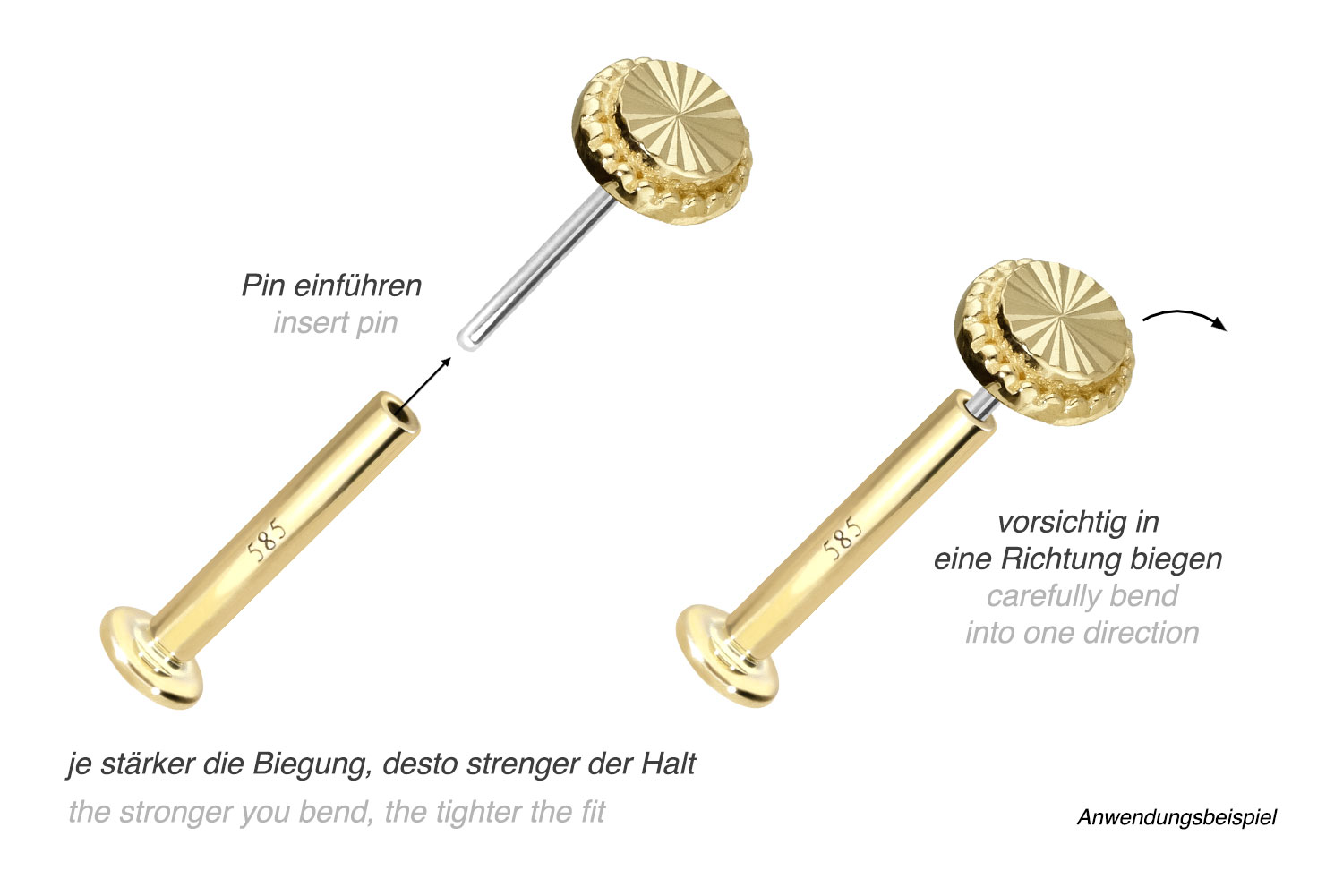 14 Karat Gold Labret mit Push Fit DISC