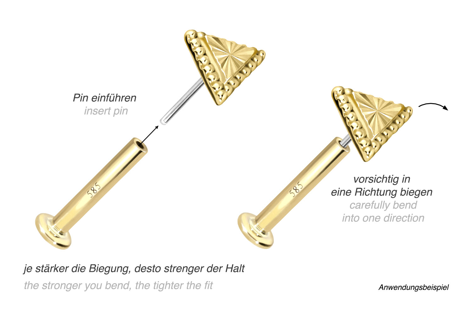 14 Karat Gold - Labret mit Push Fit Dreieck
