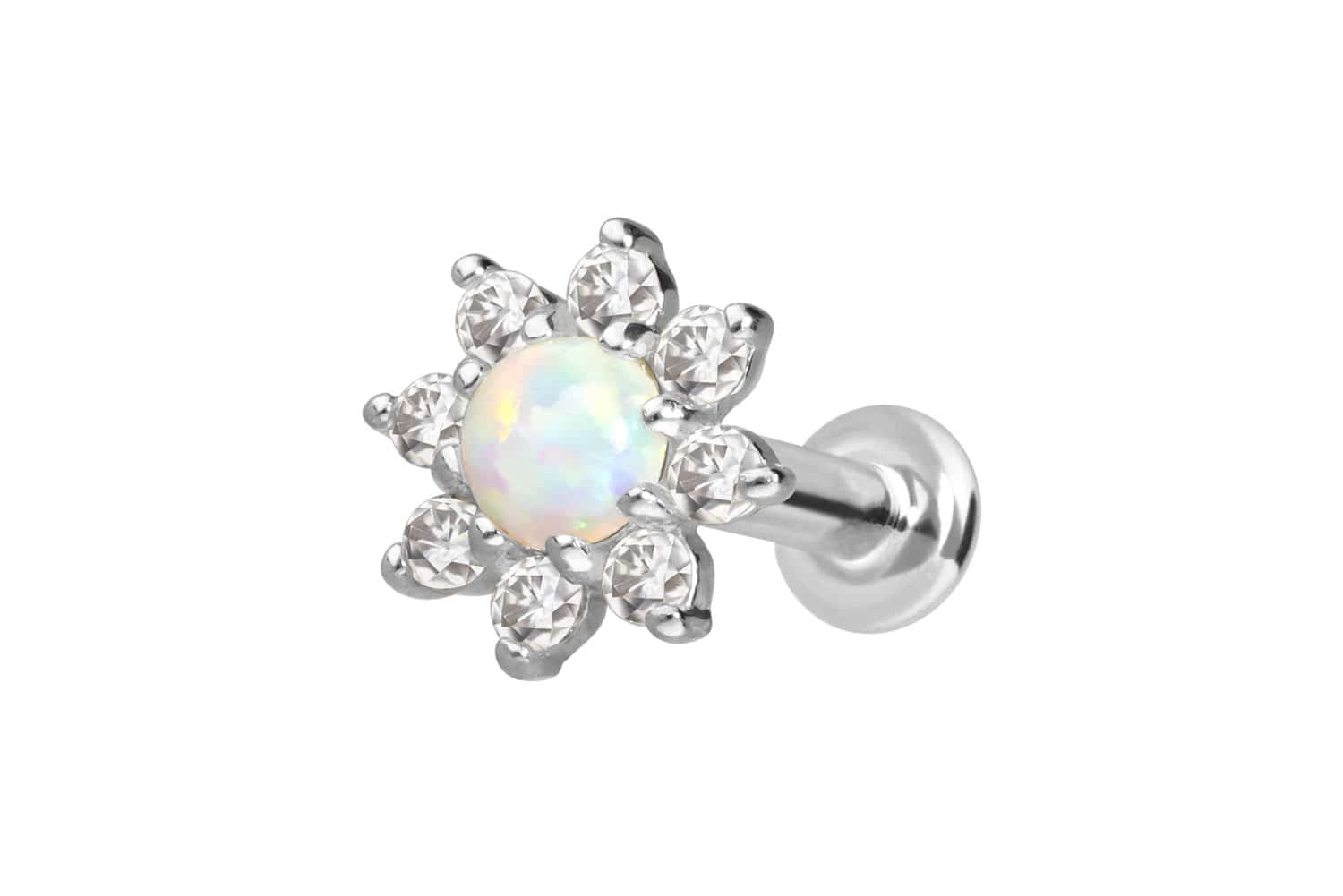 14 Karat Gold - Labret mit Push Fit Moissanit-Blume + synthetischer Opal
