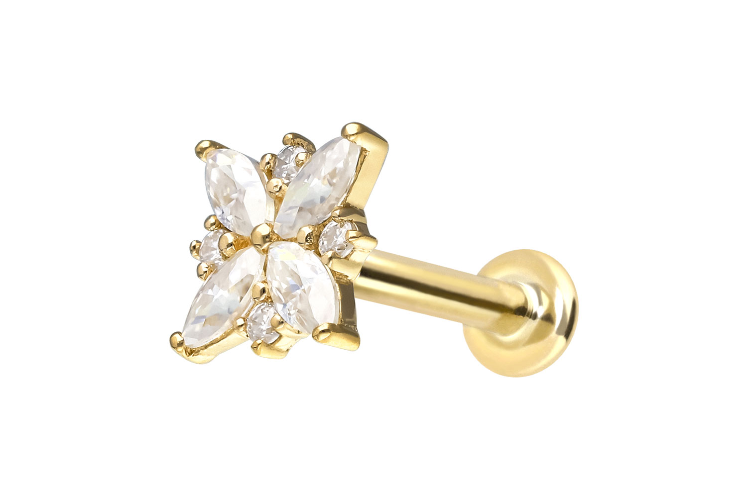 14 Karat Gold - Labret mit Push Fit Moissanit-Blume