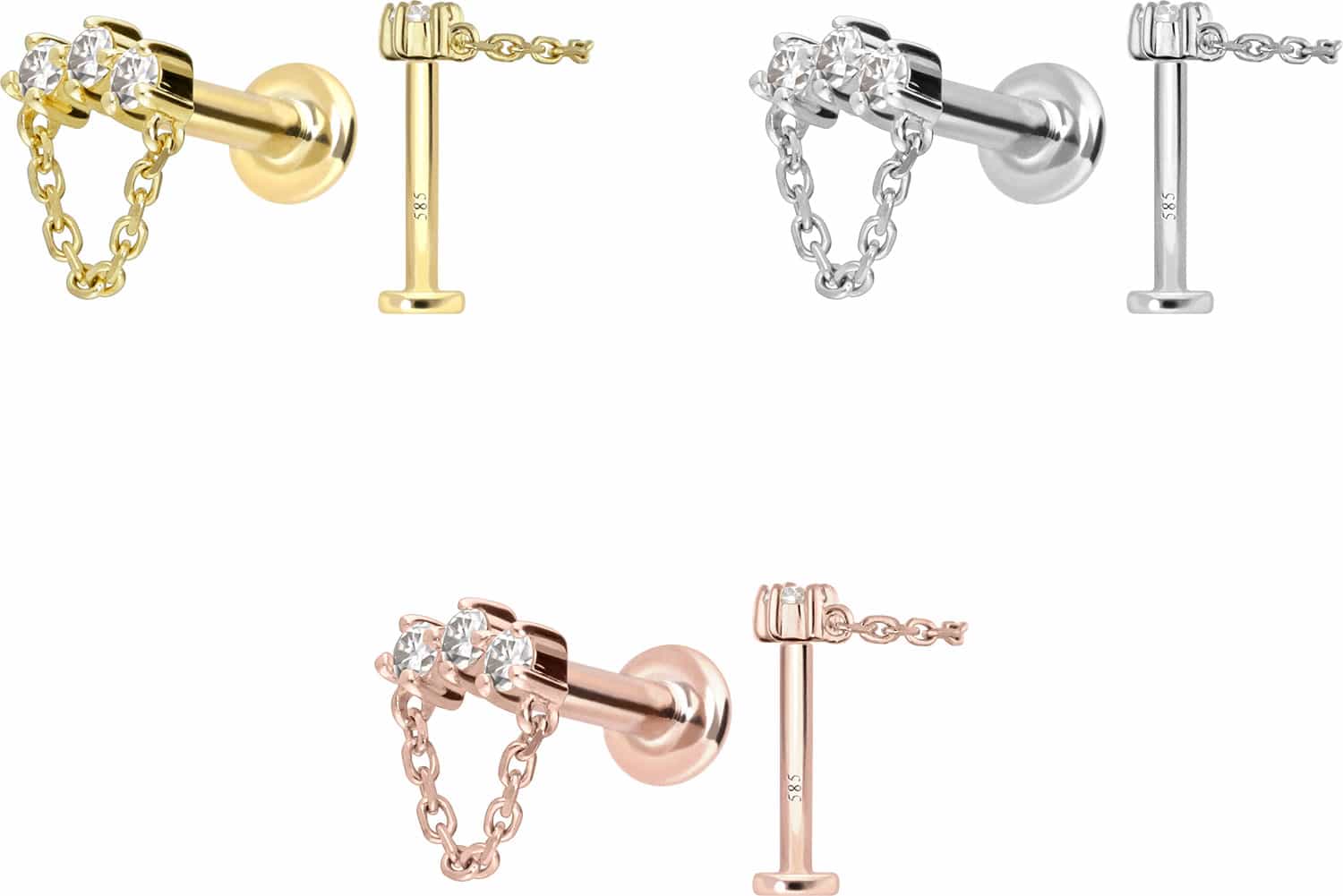 Material: 14 Karat (585er) Gelbgold / Roségold / Weißgold (rhodiniert) / Moissanit / Titan (Grad 23)
