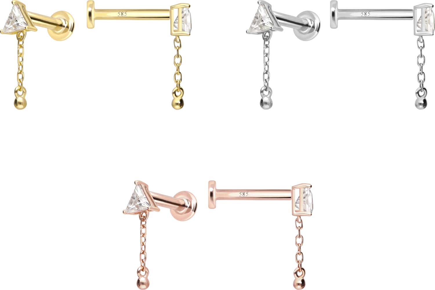 14 Karat Gold Labret mit Push Fit MOISSANIT-DREIECK + KETTE