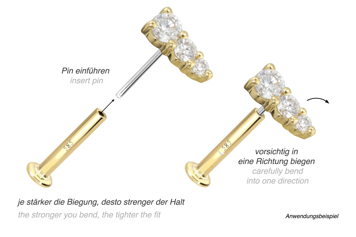 14 Karat Gold - Labret mit Push Fit Moissanit-Eiszapfen