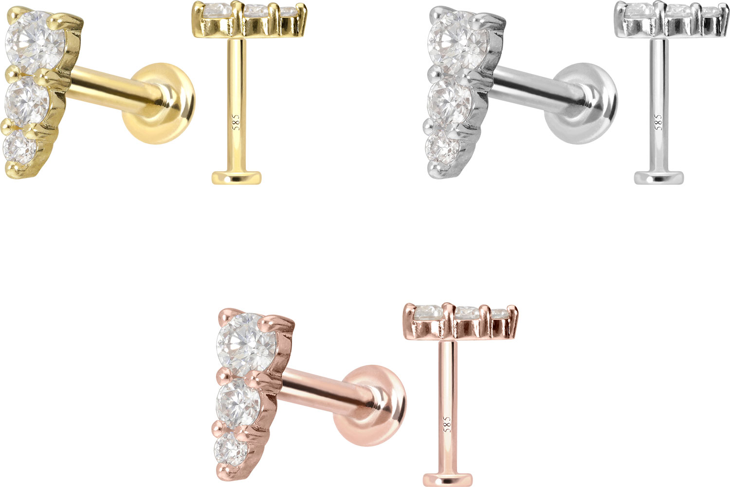 14 Karat Gold Labret mit Push Fit MOISSANIT-EISZAPFEN