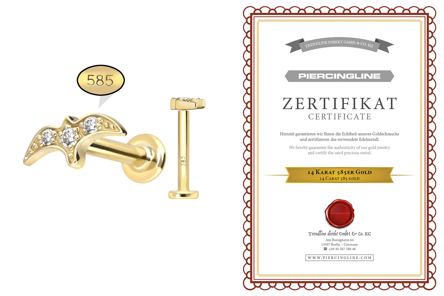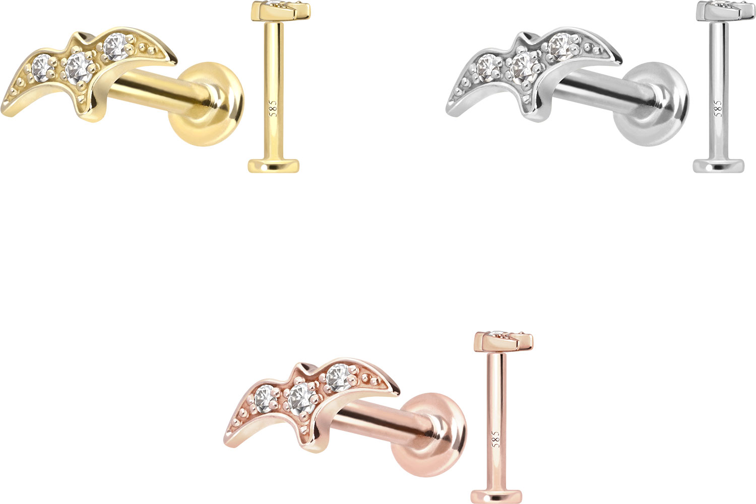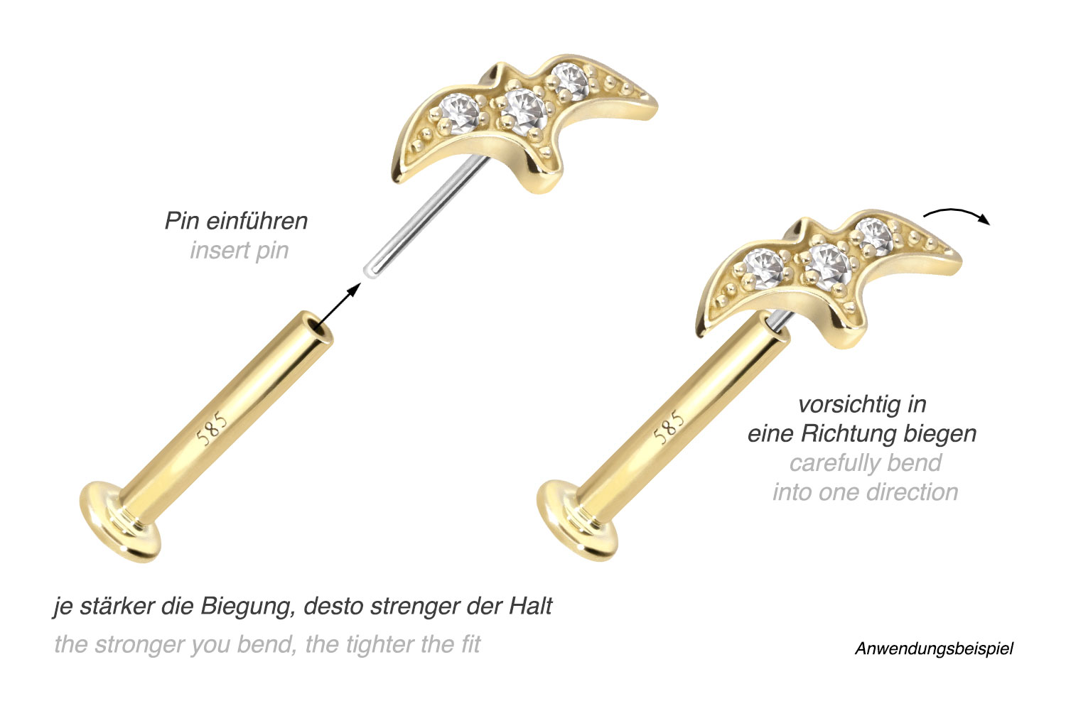14 Karat Gold - Labret mit Push Fit Moissanit-Schwalbe
