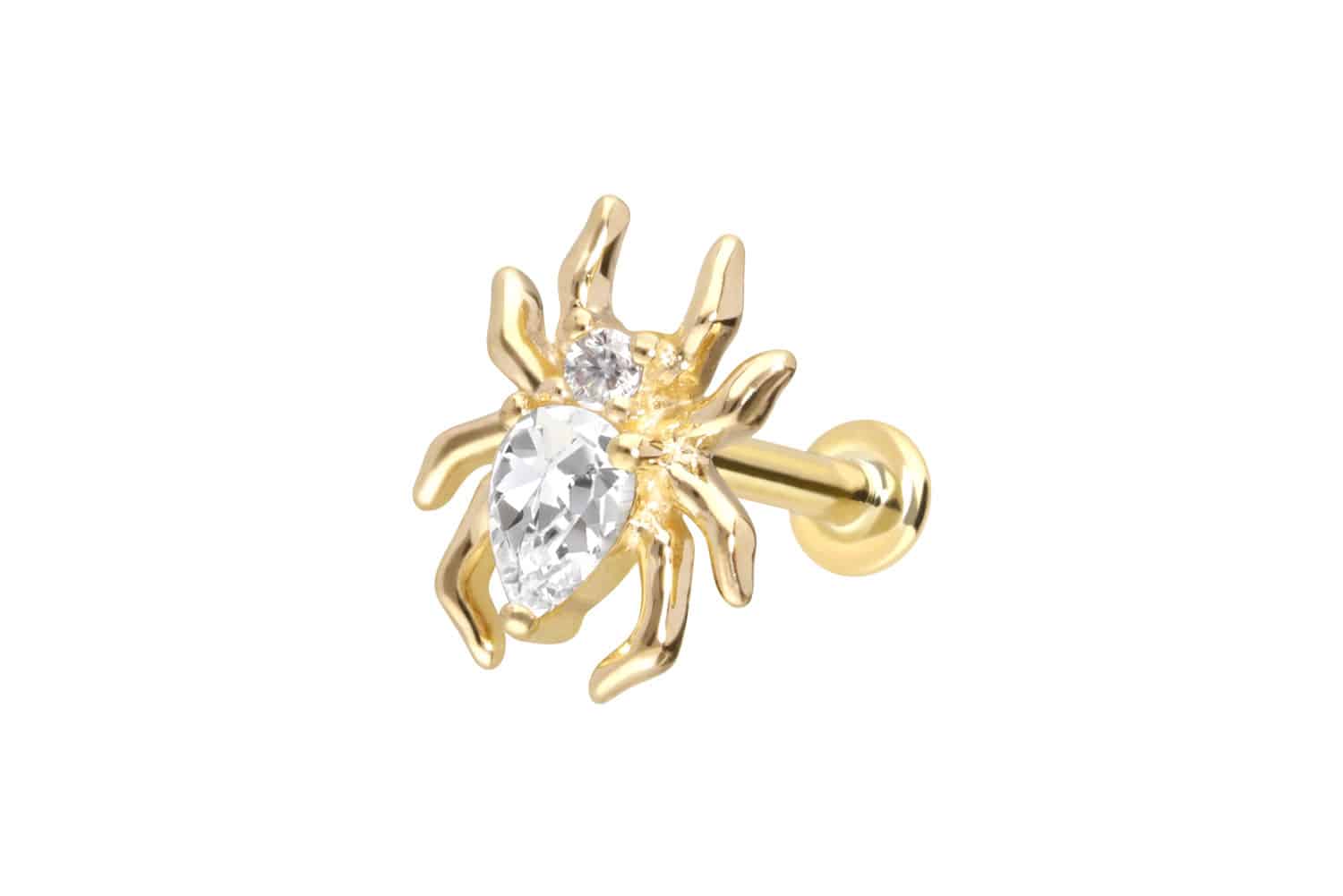 14 Karat Gold - Labret mit Push Fit Moissanit-Spinne