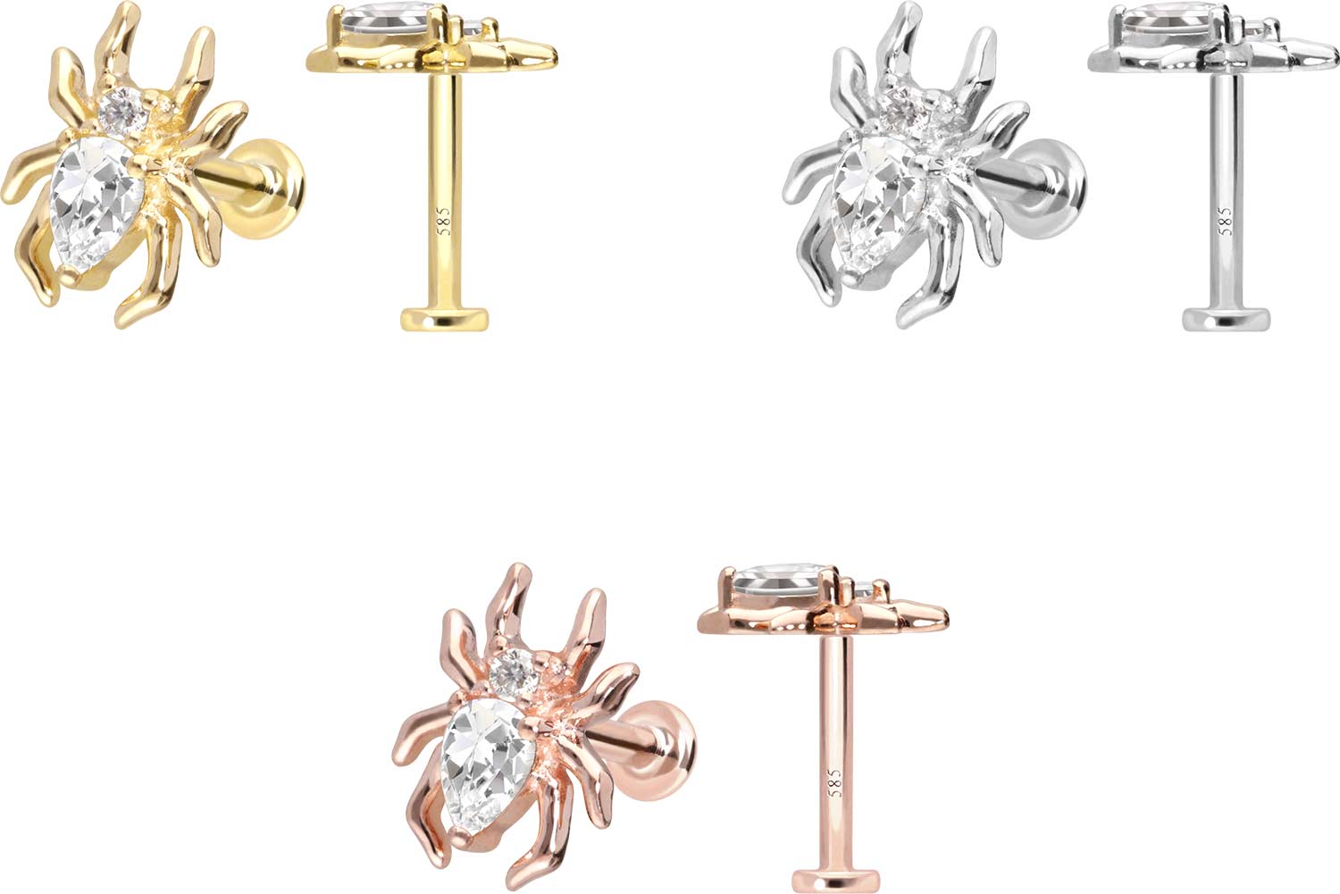14 Karat Gold Labret mit Push Fit MOISSANIT-SPINNE