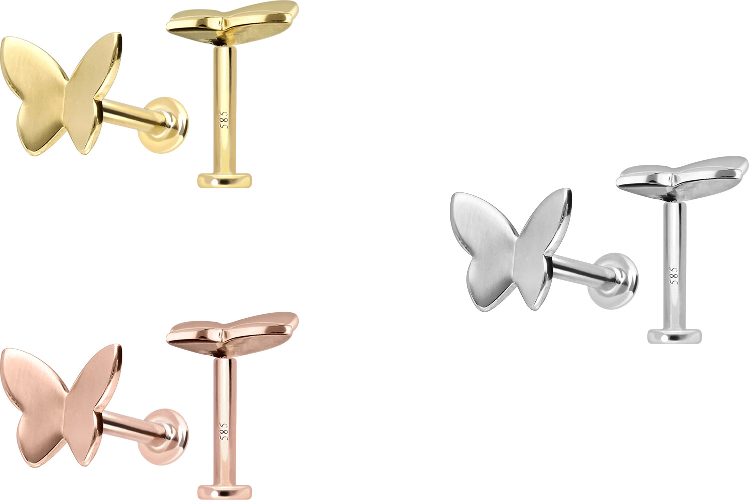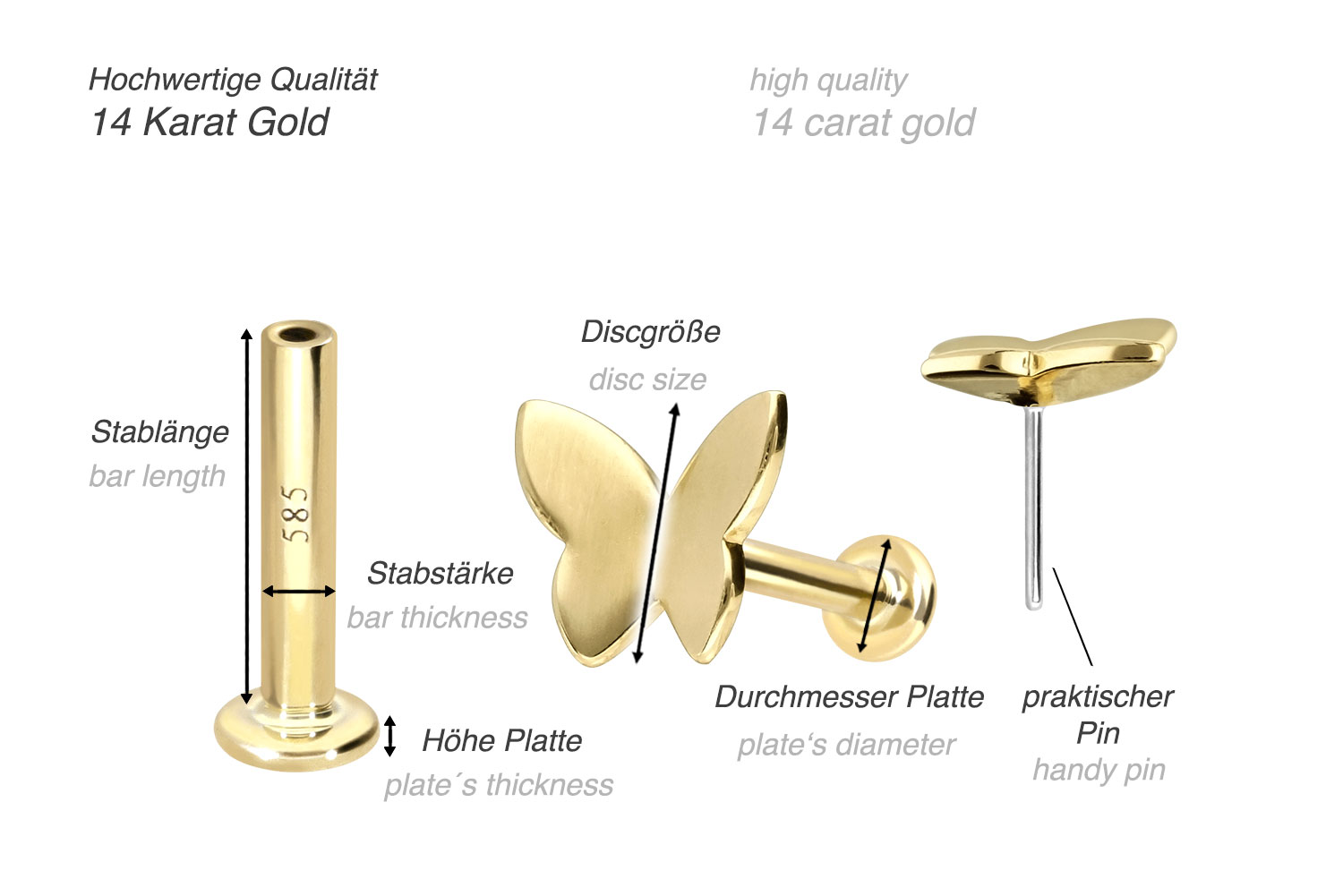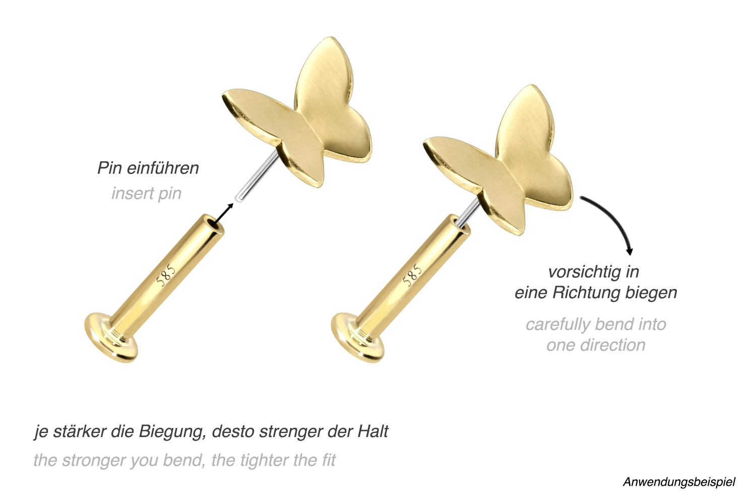 14 Karat Gold - Labret mit Push Fit Schmetterling