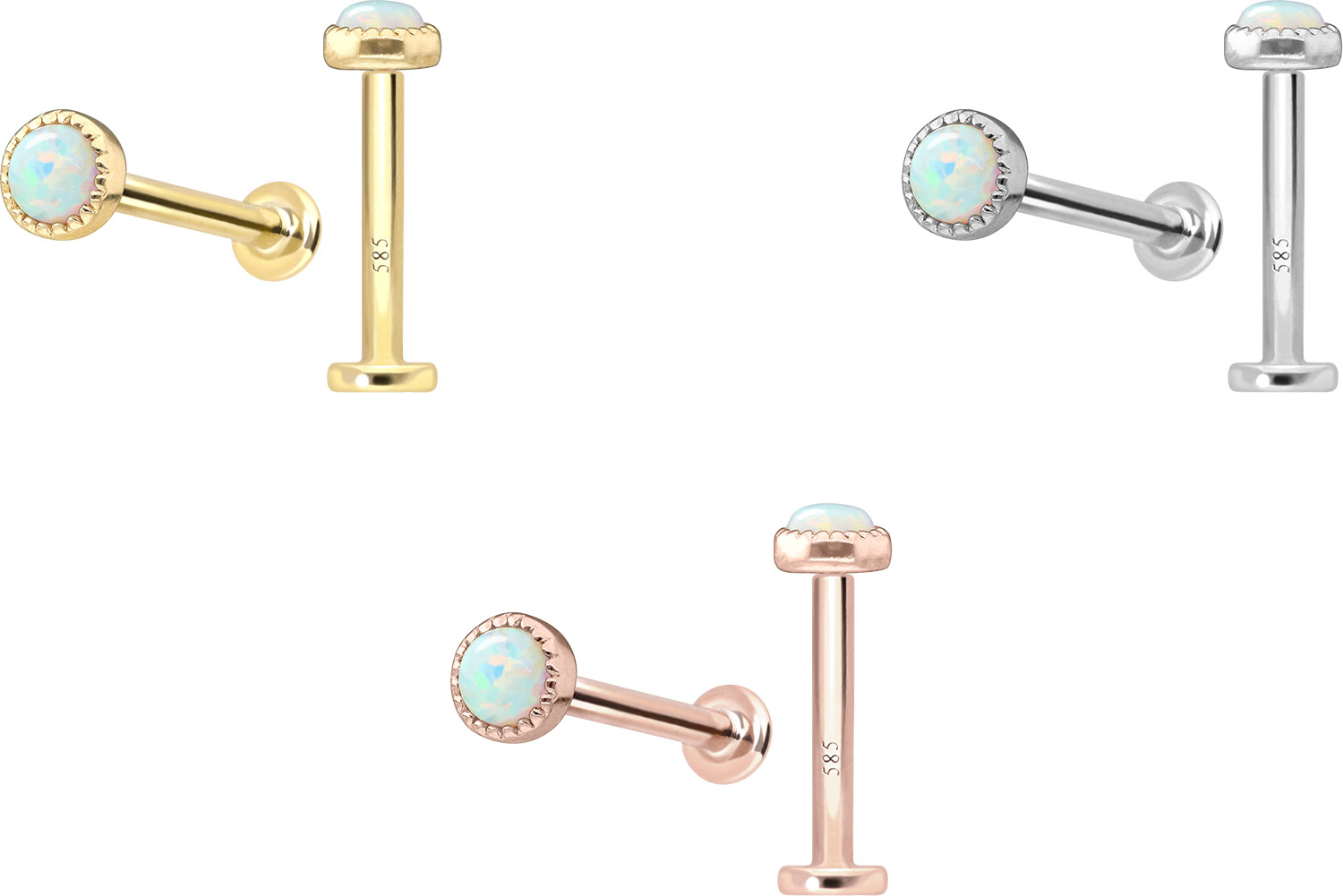 14 Karat Gold - Labret mit Push Fit synthetischer Opal