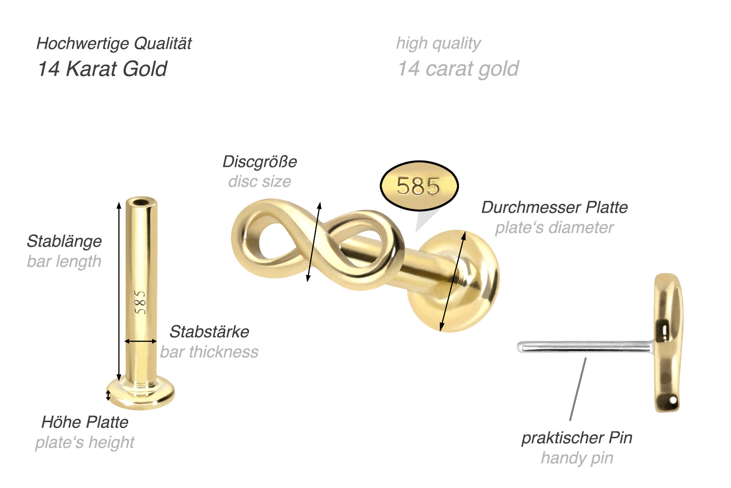 14 Karat Gold - Labret mit Push Fit Unendlichkeit