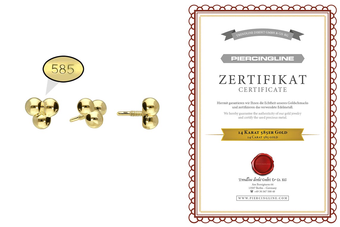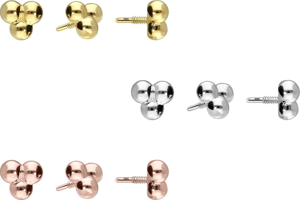 Dieser zeitlos schöne Schraubaufsatz in Form von drei Kugeln besteht vollständig aus hochwertigem 14 Karat (585er) Gold, das neben seiner exzellenten Qualität auch mit Eigenschaften wie guter Hautverträglichkeit und hoher Beständigkeit zu begeistern weiß. Farblich ist er in Gelbgold, Roségold und rhodiniertem Weißgold erhältlich. Jeder Einzelne unserer Artikel aus 14-karätigem Gold wird mit viel Liebe zum Detail in Handarbeit gefertigt und ist somit ein Unikat. Das 0,8 mm starke Außengewinde des Aufsatzes ist mit all unseren 14 Karat (585er) Gold Produkten, die über ein solches Innengewinde verfügen, kompatibel, sodass sich vielfältige Kombinationsmöglichkeiten ergeben.