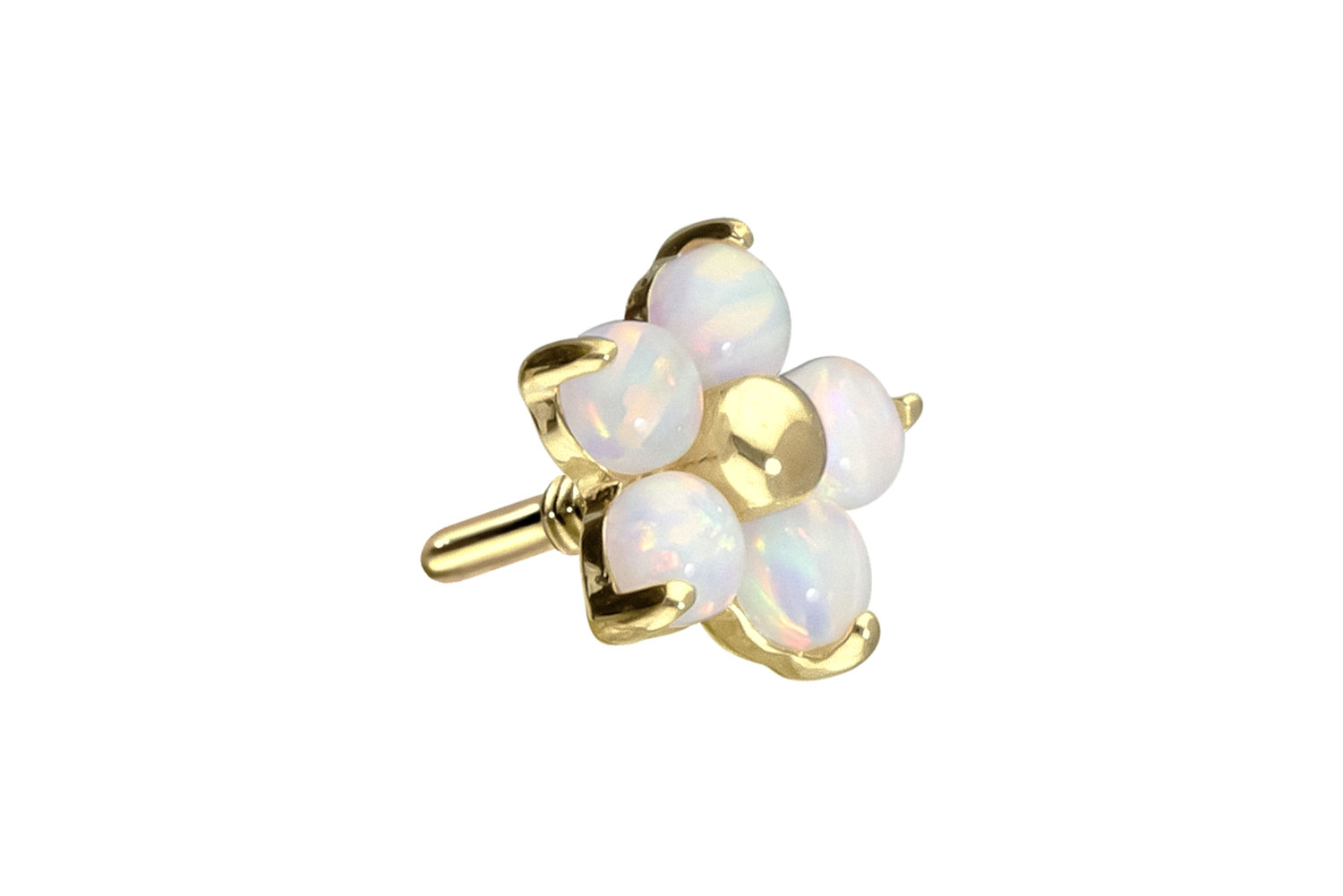 14 Karat Gold Schraubaufsatz mit Außengewinde BLUME + 5 SYNTHETISCHE OPALE