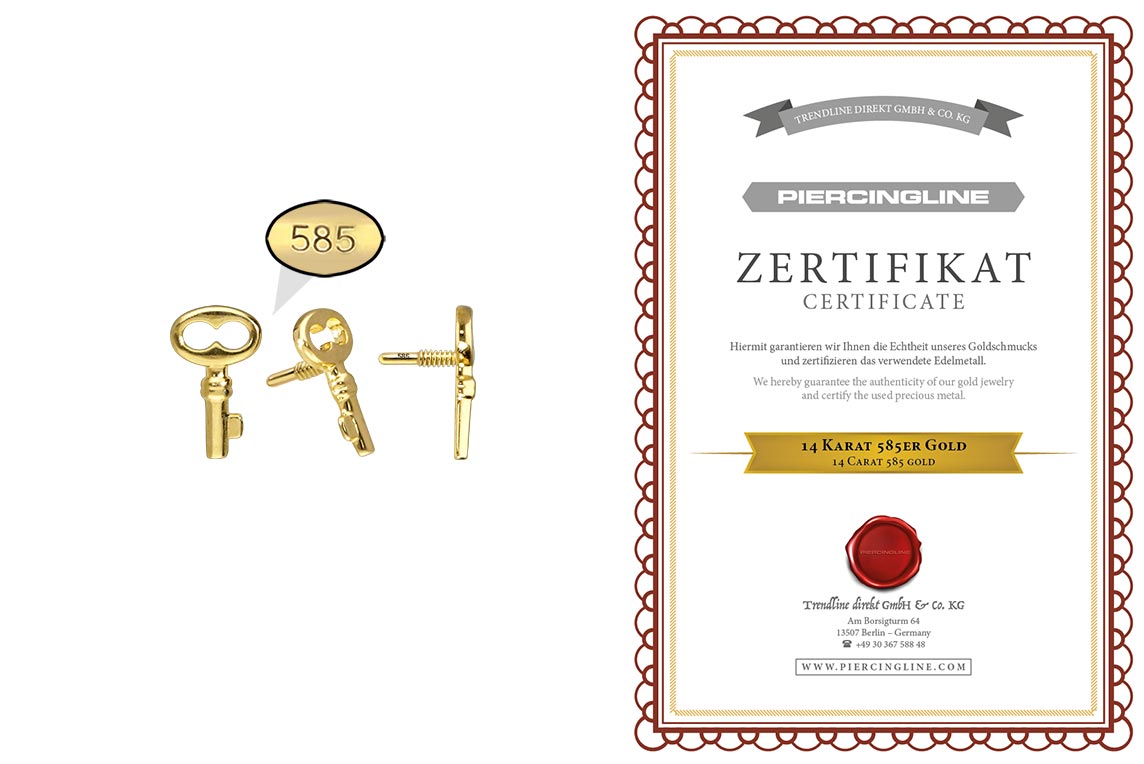 Dieser zeitlos schöne Schraubaufsatz in Form eines Schlüssels besteht vollständig aus hochwertigem 14 Karat (585er) Gold, das neben seiner exzellenten Qualität auch mit Eigenschaften wie guter Hautverträglichkeit und hoher Beständigkeit zu begeistern weiß. Farblich ist er in Gelbgold, Roségold und rhodiniertem Weißgold erhältlich. Der Moissanit verleiht dem Schmuckstück seinen außergewöhnlichen, diamantenähnlichen Glanz. Jeder Einzelne unserer Artikel aus 14-karätigem Gold wird mit viel Liebe zum Detail in Handarbeit gefertigt und ist somit ein Unikat. Das 0,8 mm starke Außengewinde des Aufsatzes ist mit all unseren 14 Karat (585er) Gold Produkten, die über ein solches Innengewinde verfügen, kompatibel, sodass sich vielfältige Kombinationsmöglichkeiten ergeben.