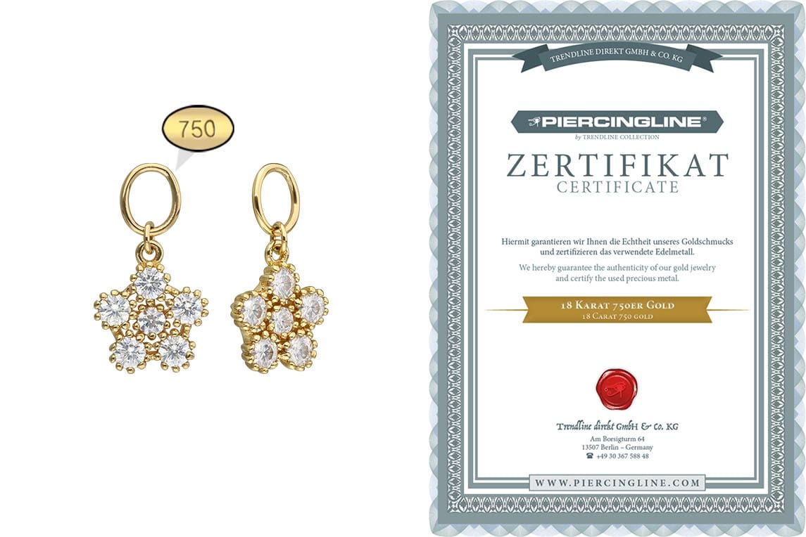 auch individuelle Gestaltung zuteil! Dafür muss der Clicker lediglich geöffnet und das Schmuckstück angebracht werden. Mit Ausnahme der Moissanite besteht der Anhänger vollständig aus hochwertigem 18 Karat (750er) Gelbgold zu dessen Materialeigenschaften unter anderem gute Hautverträglichkeit und hohe Beständigkeit zählen. Der Moissanit verleiht dem Schmuckstück seinen außergewöhnlichen, diamantenähnlichen Glanz. Jeder Einzelne unserer Artikel aus Gold wird mit viel Liebe zum Detail in Handarbeit gefertigt und ist somit ein Unikat. So wird dieser entzückende Anhänger in Form einer Blume zu einer hervorragenden Ergänzung für jeden entsprechenden Clicker!