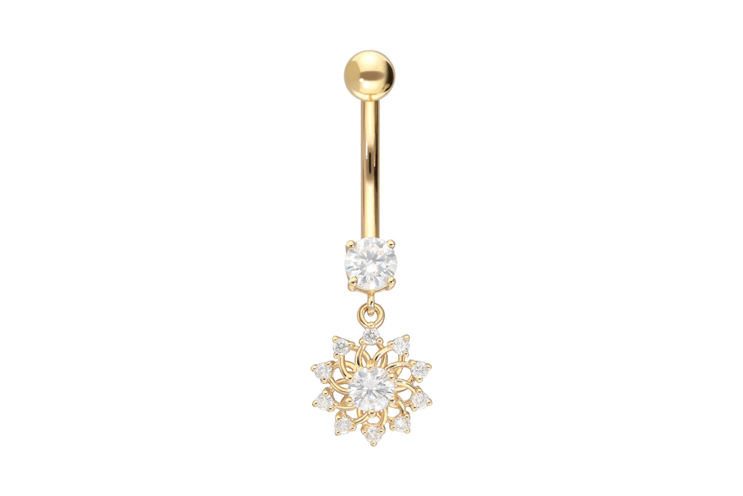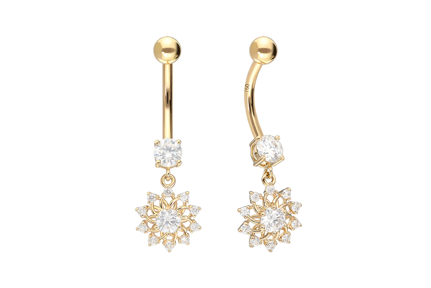 18 Karat Gold - Bauchnabelpiercing Moissanit-Blume