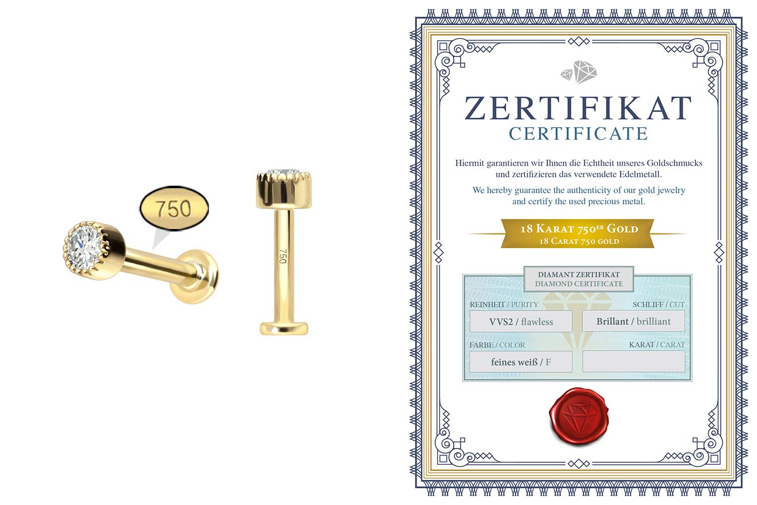 18 Karat Gold - Labret mit Innengewinde Diamant-Disc