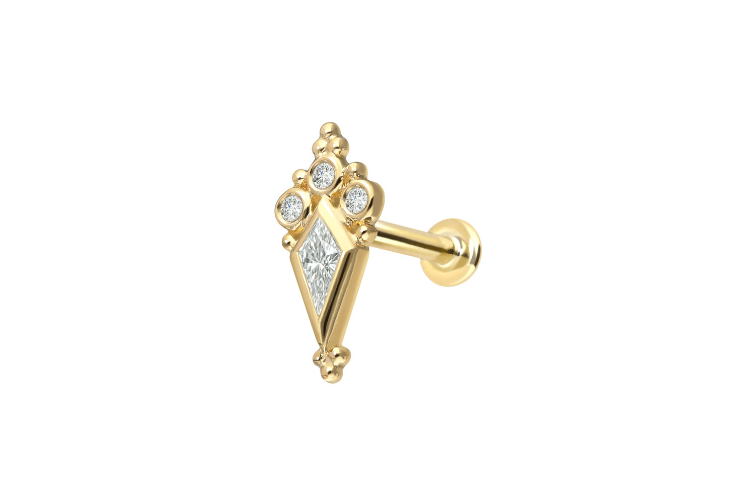 18 Karat Gold - Labret mit Innengewinde Diamant-Schild