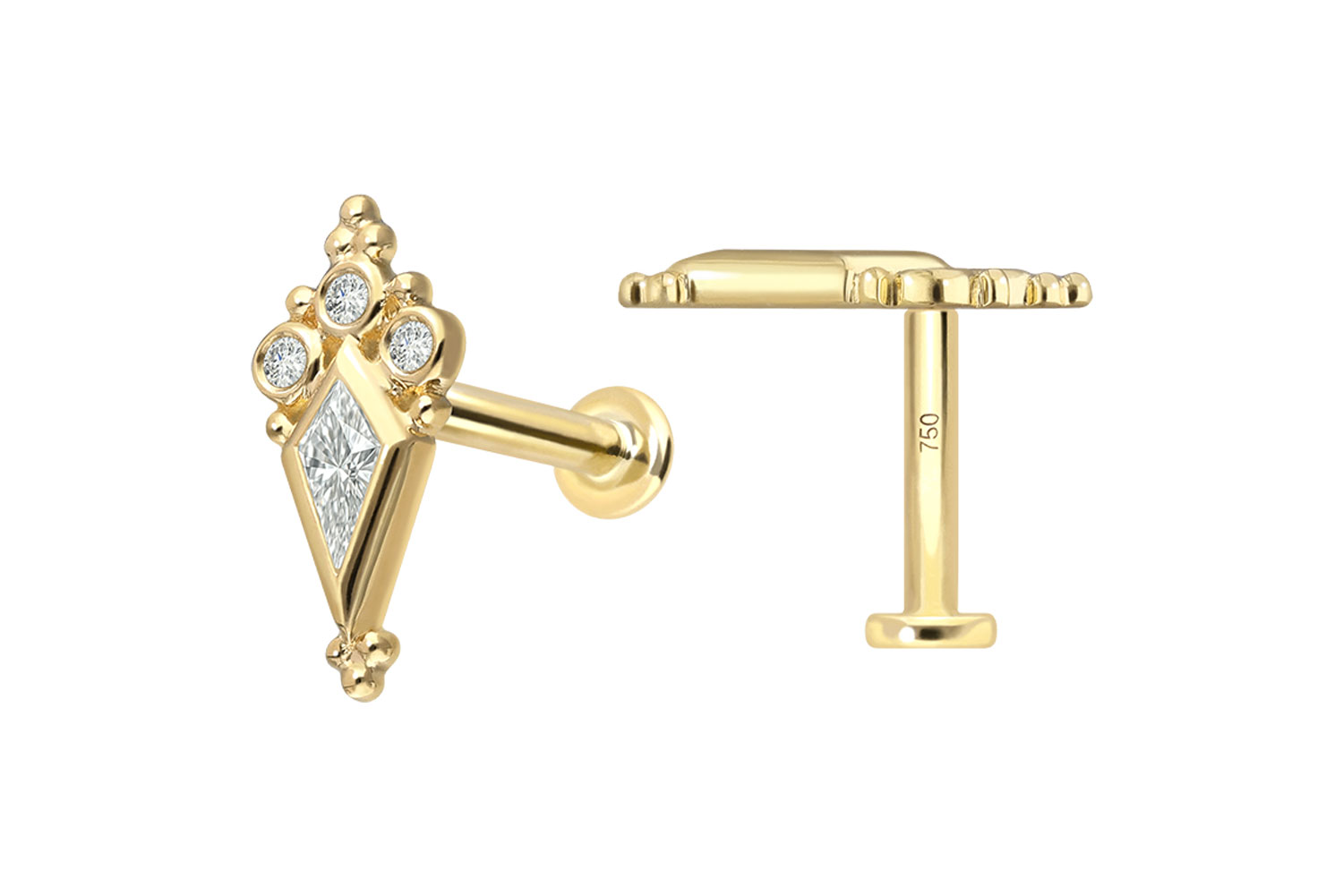 18 Karat Gold - Labret mit Innengewinde Diamant-Schild