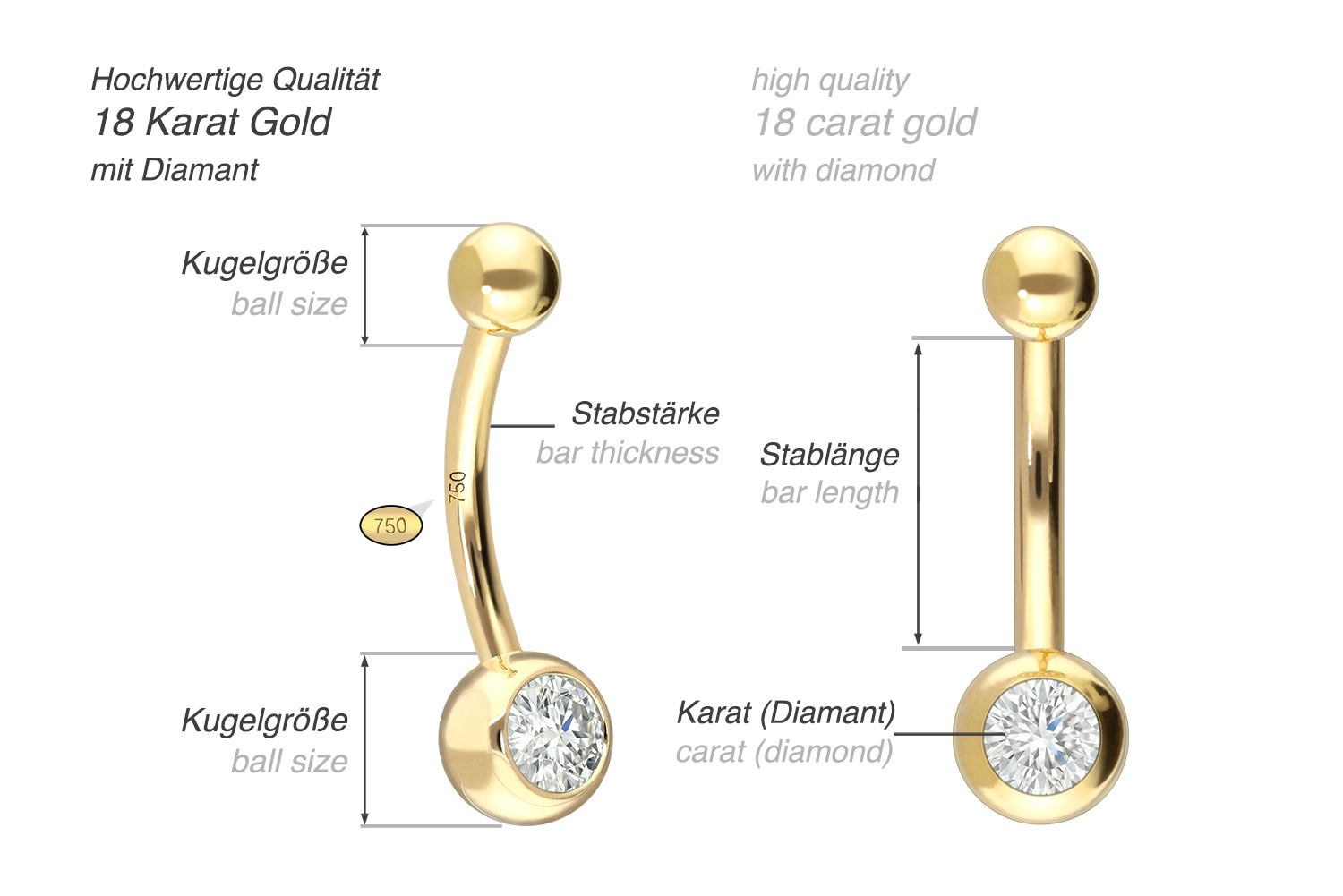 18 Karat Gold - Mini Bauchnabelpiercing Diamant