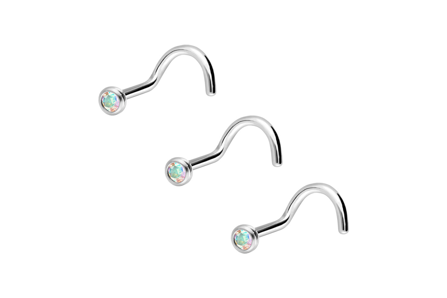 3er Set Chirurgenstahl Nasenstecker Spirale KRISTALL