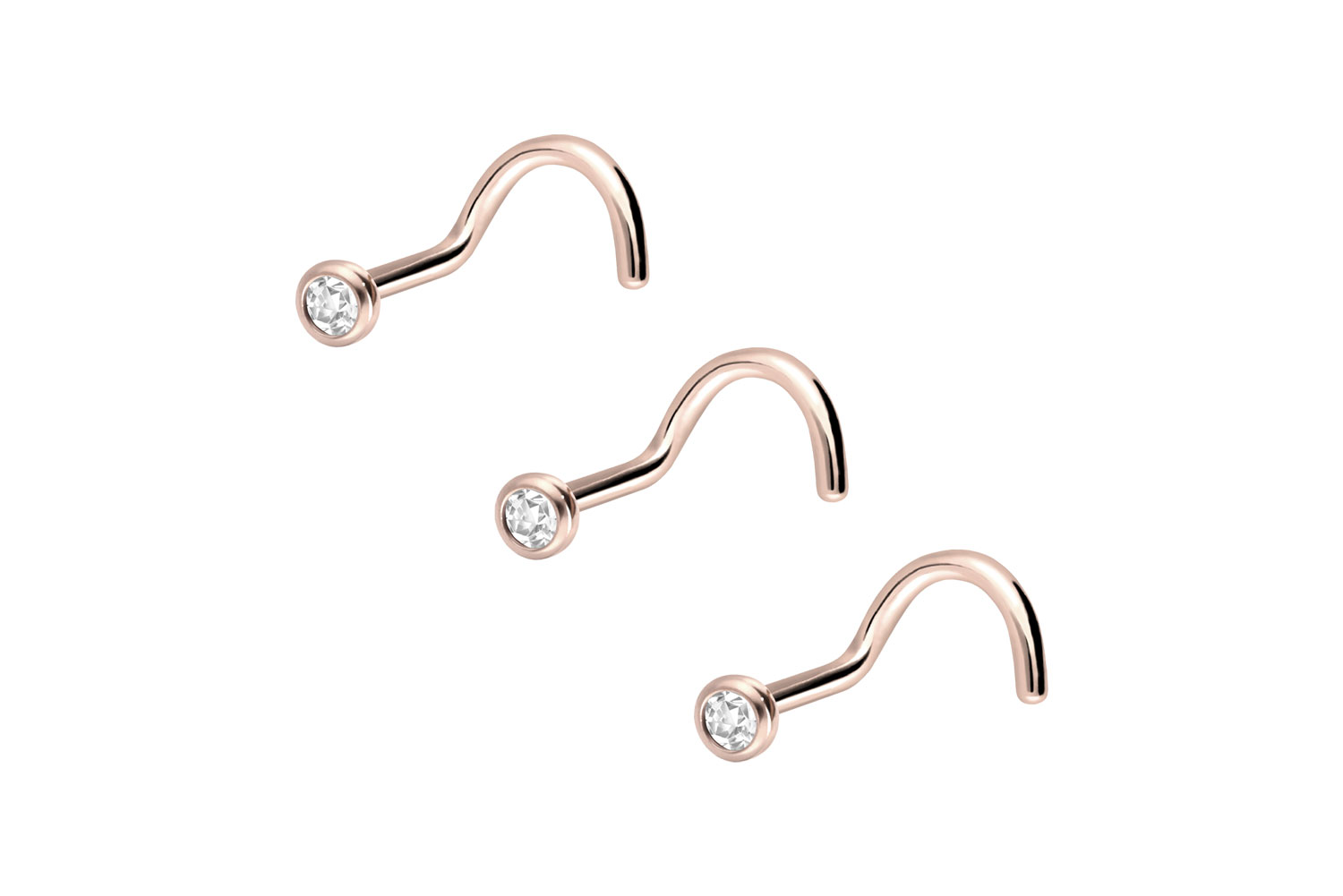 3er Set Titan Nasenstecker Spirale KRISTALL