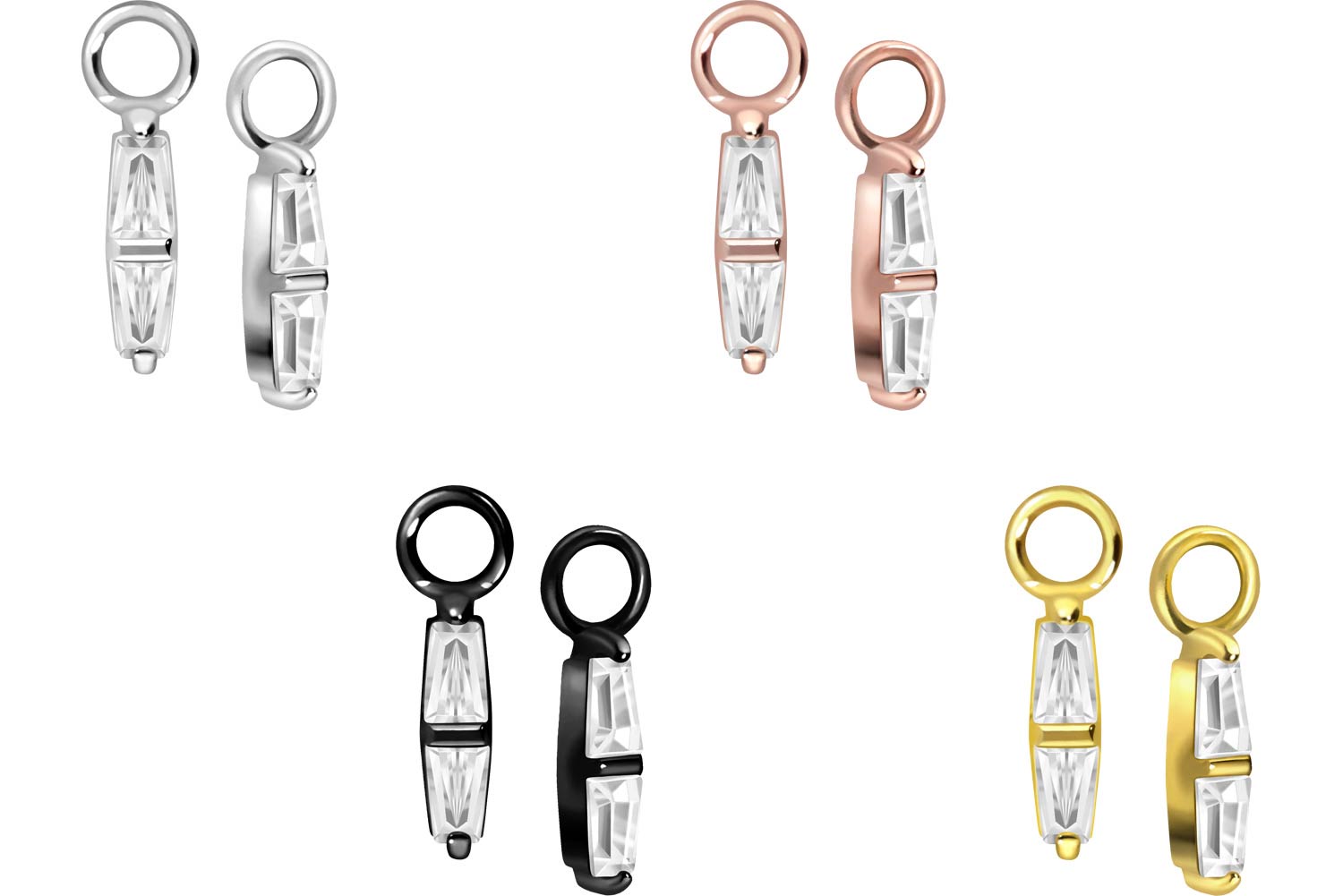 Chirurgenstahl 316L - Anhänger für Clicker 2 eingefasste Kristallrechtecke