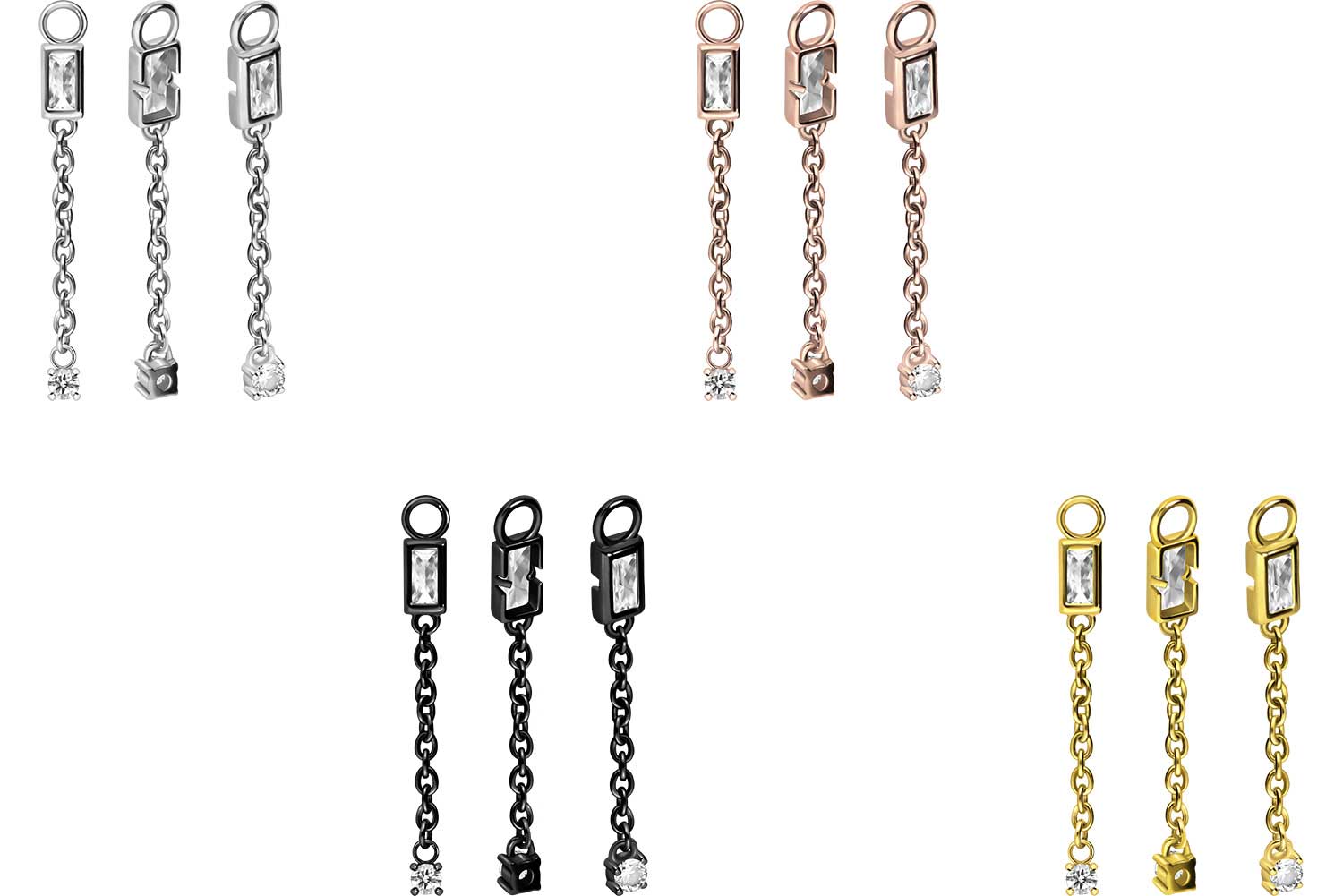 Varianten mit farbiger PVD-Beschichtung gewährleistet wird. So wird dieser entzückende Anhänger in Form eines Kristallrechtecks, an welchem eine Kette mit einem weiteren Kristall befestigt ist, zu einer hervorragenden Ergänzung für jeden entsprechenden