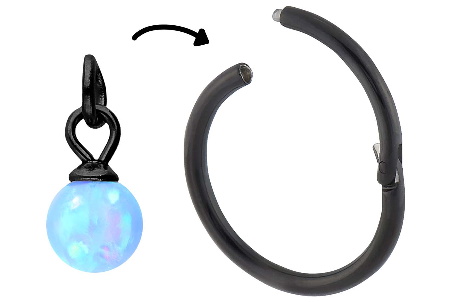 Clickern mit einer Stabstärke von 0,8 mm bis 2 mm wird dank unserer einzigartigen Anhänger eine fantasievolle und damit auch individuelle Gestaltung zuteil! Dafür muss der Clicker lediglich geöffnet und das Schmuckstück angebracht werden. Es besteht aus hochwertigem Chirurgenstahl 316L, zu dessen Materialeigenschaften unter anderem ebene Beschaffenheit und hohe Beständigkeit zählen. Hinzu kommt Farbechtheit, die sowohl bei der silberfarbenen als auch bei den anderen Varianten mit farbiger PVD-Beschichtung gewährleistet wird. So wird dieser entzückende Anhänger in Form eines synthetischen Opals zu einer hervorragenden Ergänzung für jeden entsprechenden Clicker!